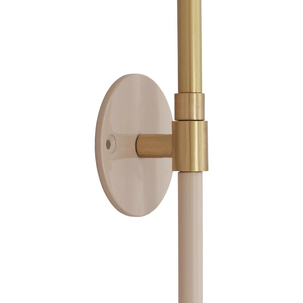 Beautifully trendy, the Zaphire wall sconce offers a modern enhancement for any space. Its blush conical shade and wall plate are offset by its angular brass neck.