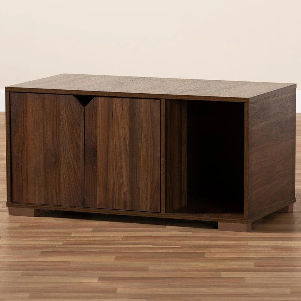 Baxton Studio Jasper 2-Door Litter Box Cover House In Walnut