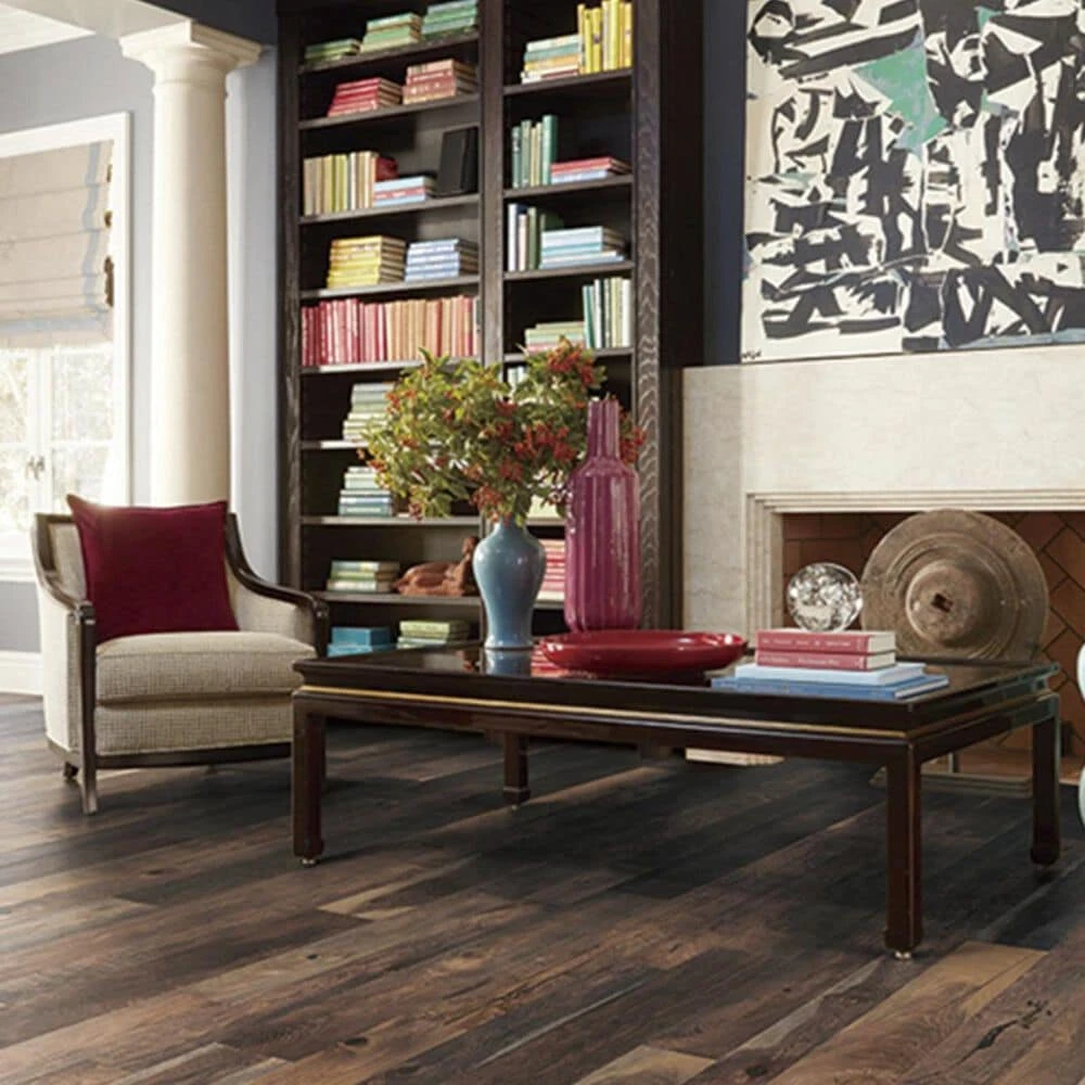 Heritage. Simplicity. Grace. The latest look in hardwood is a mirror held up to the timeless beauty of the past, thanks to the Villa Bocelli collection. Just as the reclaimed look has reinvented everything from furnishings to ceiling beams, now Villa Bocelli can enliven the rooms of your home. These stunning floors are brought to life by mesmerizing color variations that play across French oak and Hickory surfaces – contrasting areas of lights and darks conspiring with the wood’s natural grain to add visual intrigue. As different lighting plays upon it, the look is made new again, never getting old even while looking aged. To further enhance the visual allure, our artisan craftsmen custom-cut planks in three random widths and distress each surface employing four distinctive circular and straight sawmark techniques. So while the workmanship is modern and durable, the look reclaims a heritage look and feel. Shop Villa Bocelli floors in a range of rich colors that reflect the weathered patina of reclaimed woods – all sealed with an ultra low-gloss Bona premium finish. Hardwood beauty as priceless as an heirloom is now yours to reclaim.