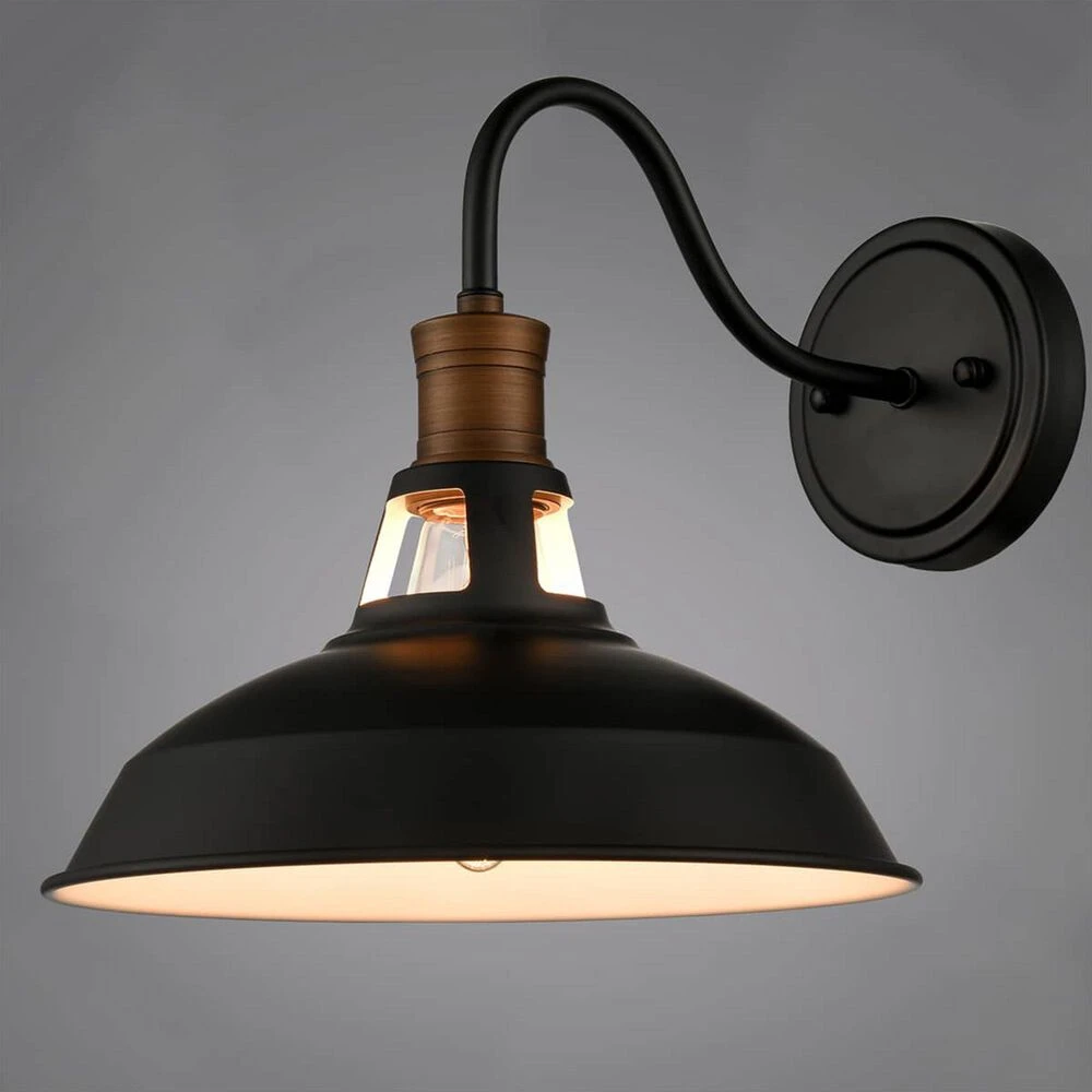 These farmhouse black wall sconce with barn shapes are tasteful pieces for gracing your bathroom, bedroom, entryway, foyer, hallway, kitchen, and living room. Each wall sconce is compatible with one 60-watt E26-base bulb (NOT included). The wall light fixtures are ETL listed for dry locations.