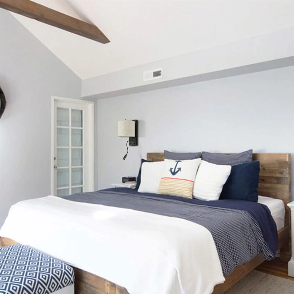 Boasting a rustproof semigloss black finish, the black bedroom wall lamps liven up your home with a dash of drama. Their cylinder khaki slub linen shades cast an enchanting aura of elegance and showcase the beauty of geometry. Featuring 85 CRI and 230LM, their 2W LED night lights are flicker-free and are able to serve as a light source for reading, photo shooting, and drawing focus to artwork. Feel free to adjust the 11.8-inch flexible tube to suit your lighting needs. Fitted with a USB charging port with 5Vdc/2.1A output, they can be used for charging mobile phones.