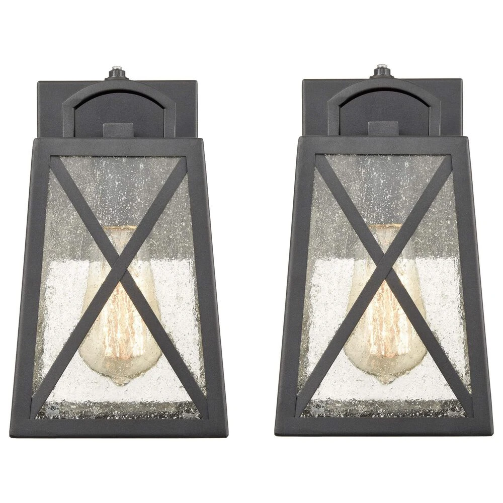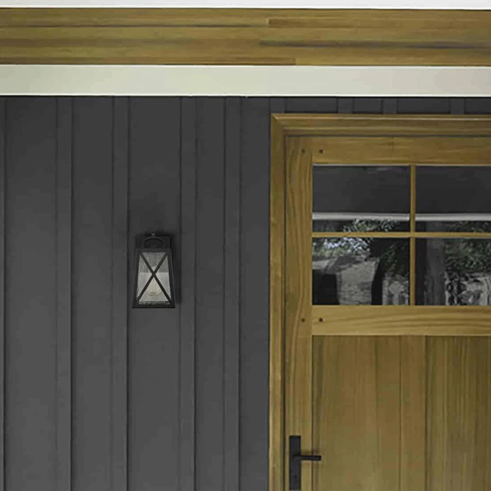 Finished in matte black, the dusk to dawn outdoor lights lend a dash of industrial touch to your outdoor space. Their trapezoid shades are showing off the beauty of geometry. Their framing crisscross accent gracefully embraces their opaque impurity-free seeded glass shades, conveying an understated grace to the outdoor space.