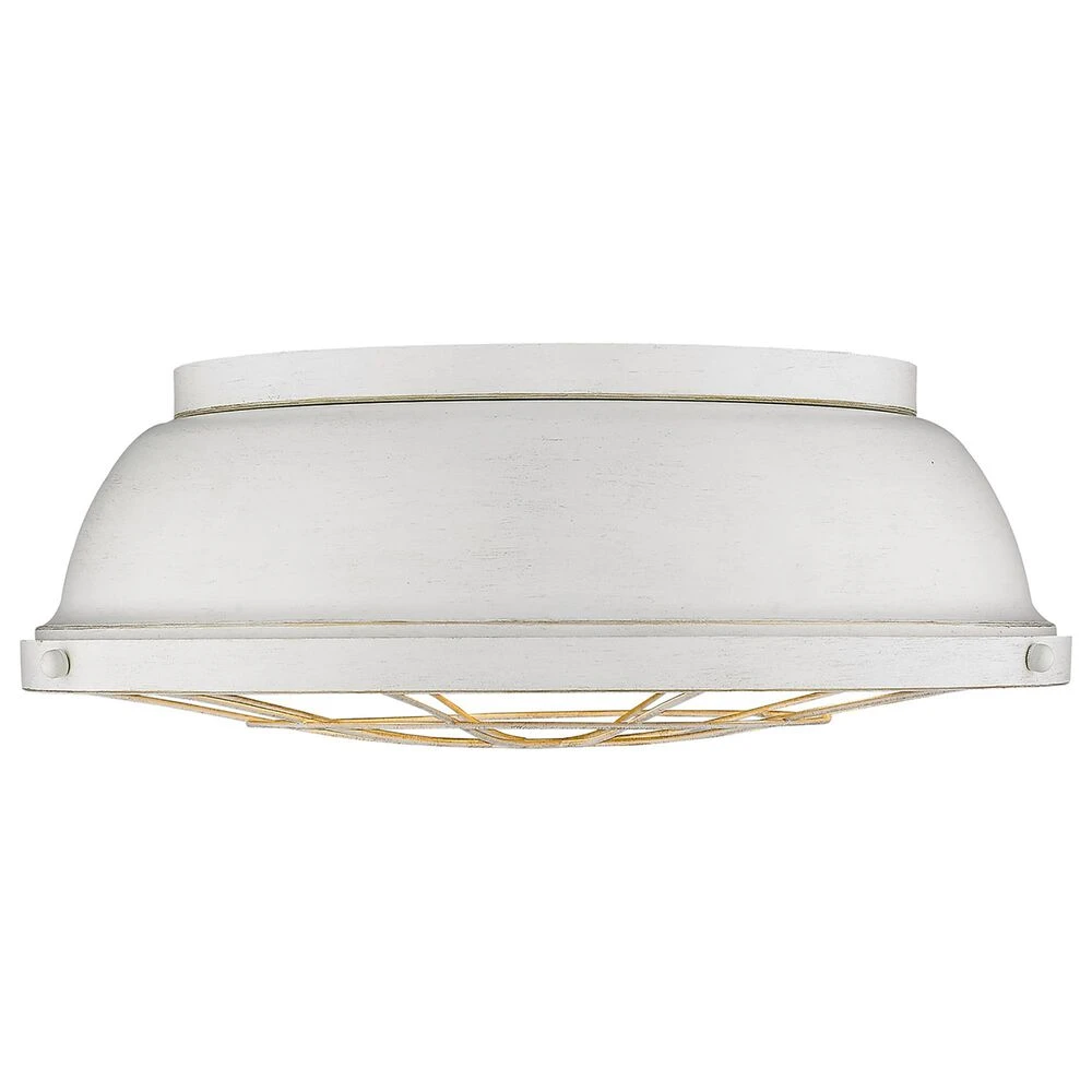 The Bartlett collection features industrial, vintage-inspired fixtures with simple, traditional silhouettes that are a nod to a bygone era. The collection features authentic details like caged diffusers and exposed hardware.The French White finish features brushed gold highlights. This flush mount offers widespread ambient lighting.