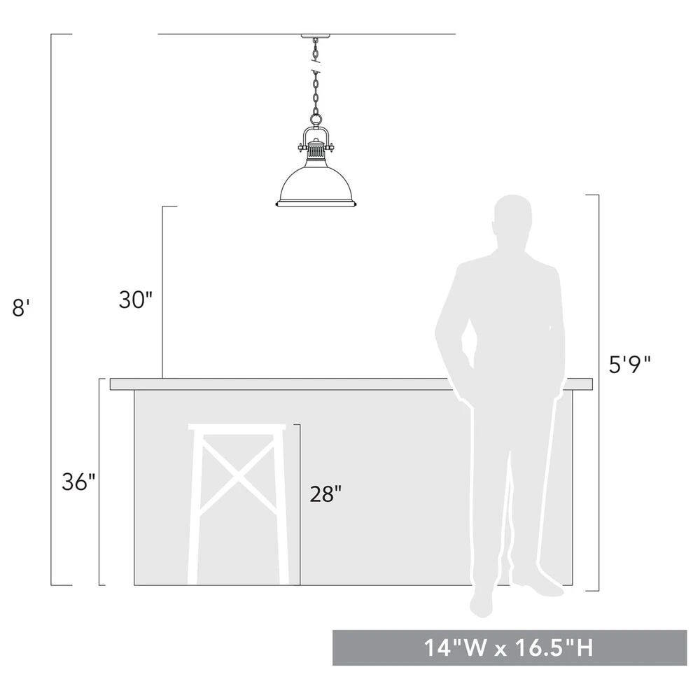 Transform the look of your room with this classic, vintage-inspired fixture, the Duncan collection is contemporary style with an industrial feel. The collection features a variety of simple, traditional silhouettes that are a nod to a bygone era. A variety of plated and painted metal shade finishes are offered in combination with durable Aged Brass, Matte Black, Chrome or Pewter fixture bodies. The Rubbed Bronze fixtures are paired with Rubbed Bronze shades. This large, chain-hung pendant features a glass diffuser and is comfortably sized for a small nook or island. The pendant may be hung individually or grouped over a bar. This soft pewter 1-light pendant with chain is paired with a matte black shade. The shade is a soft, matte black.