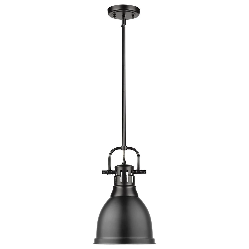 Transform the look of your room with this classic, vintage-inspired fixture, the Duncan collection is contemporary style with an industrial feel. The collection features a variety of simple, traditional silhouettes that are a nod to a bygone era. The Rubbed Bronze fixtures are paired with Rubbed Bronze shades. This small, rod-hung pendant features a may be hung individually or grouped over a bar. This matte black small pendant with rod is paired with a matte black shade. The shade is a soft, matte black .