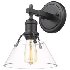 Orwell is an extensive assortment of industrial style fixtures. The beauty and character of the collection are in the refined details. This transitional series works well in a variety of settings. Partial shades shield the eyes from possible hot spots, while the open tops tease onlookers with a view of the sockets and bulbs. The design allows light and heat to escape from above and below the metal shades, providing both task and ambient lighting. Edison bulbs are recommended to complete the vintage, industrial look of the fixtures. A choice-selection of finish and shade color combinations heighten the appeal of the series. Opal glass and clear glass shades are available for bath fixtures. Single pendants are suspended from woven fabric cords while multi-light fixtures are rod-hung.