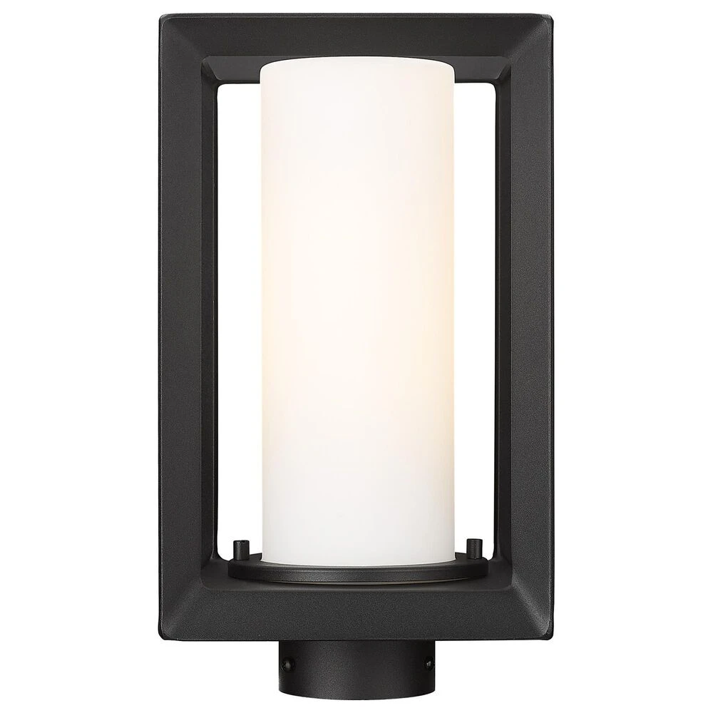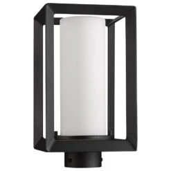 Modern lanterns featuring a handsome beveled cage design make an elegant statement in the Smyth Outdoor collection. Clean geometry creates a contemporary style. These wet-rated, open-cage fixtures are offered in a textured Natural Black finish with two glass options: Seeded or Opal. Smyth is an extensive collection that includes wet-rated options with a UV-coated layer to prevent fading. Post adapter’s compatible with 3″ diameter posts.