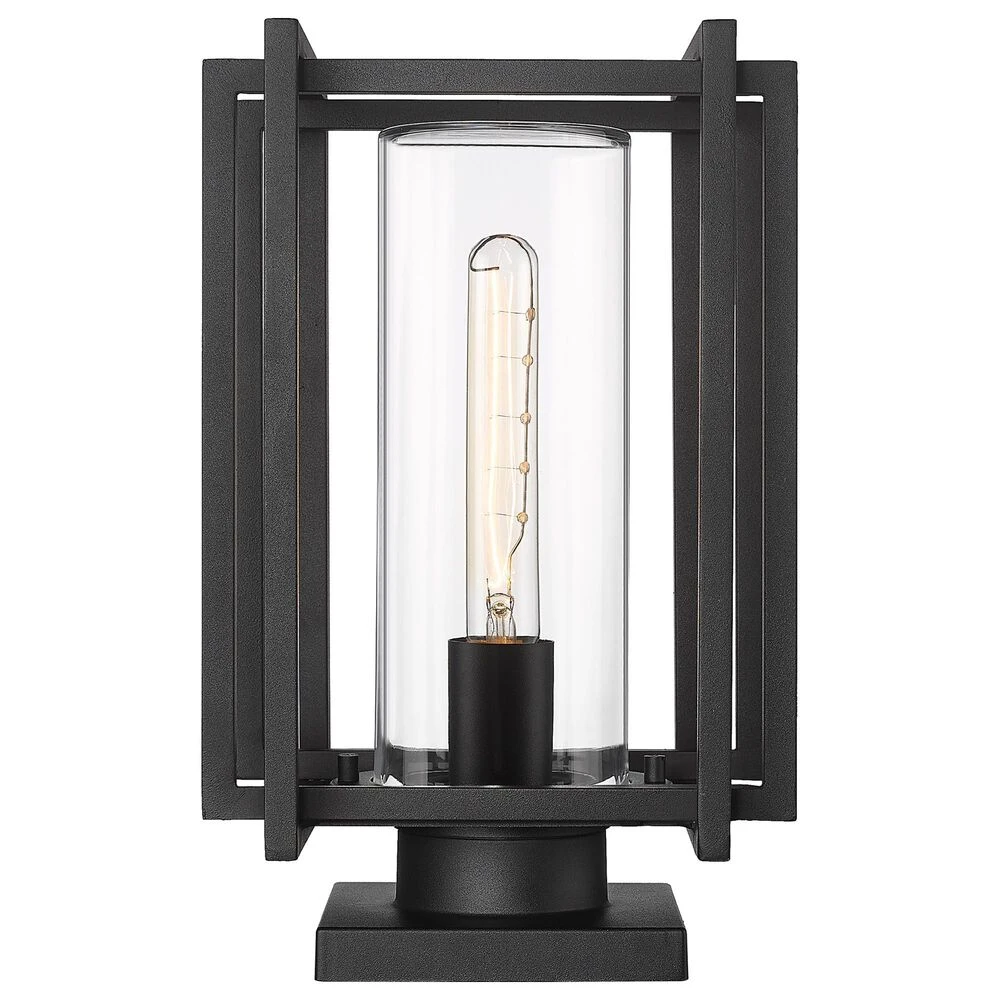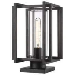 - Protective metal cage and glass shade shields bulb and diffuses light