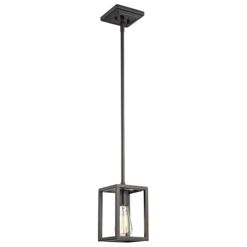 Wesson is a clean contemporary collection with a smooth black finish. The industrial look is enhanced by the exposed medium-based bulbs inside the square tubing of the open, geometric cages. Complete the modern, rustic look by installing Edison Bulbs. This mini pendant can be hung alone or in a group.