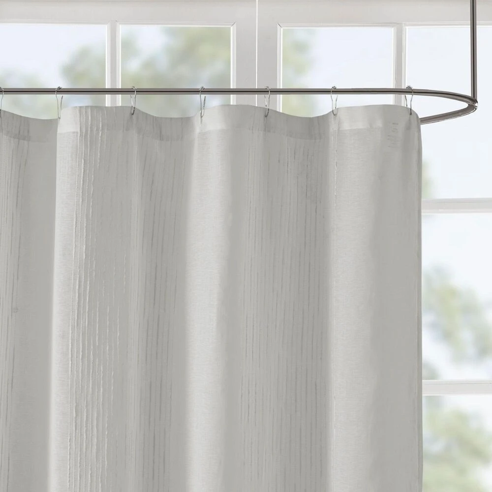 Add a casual update to your bathroom with the Anna sheer shower curtain. A striped texture within this shower curtain provides the perfect backdrop for the soft grey adding dimension to your space. As this curtain is sheer, you may want to use an opaque liner to give a more solid look.