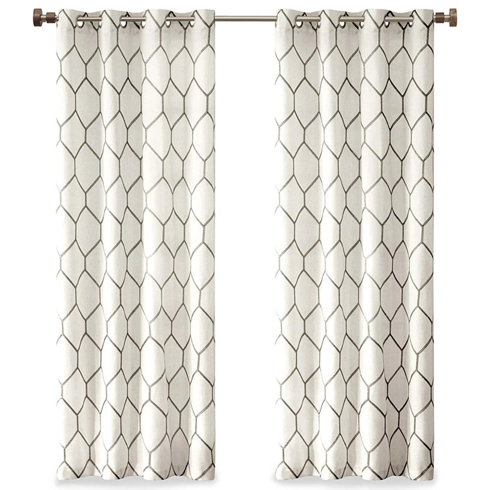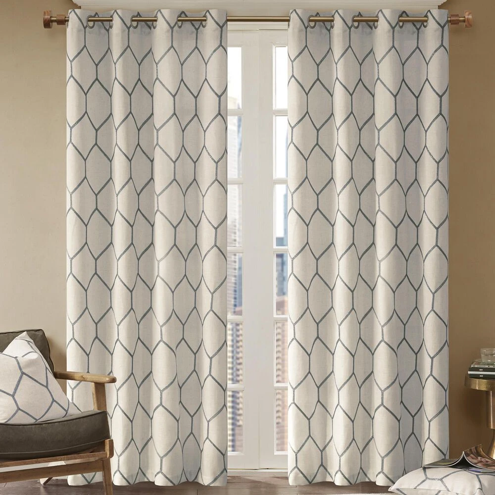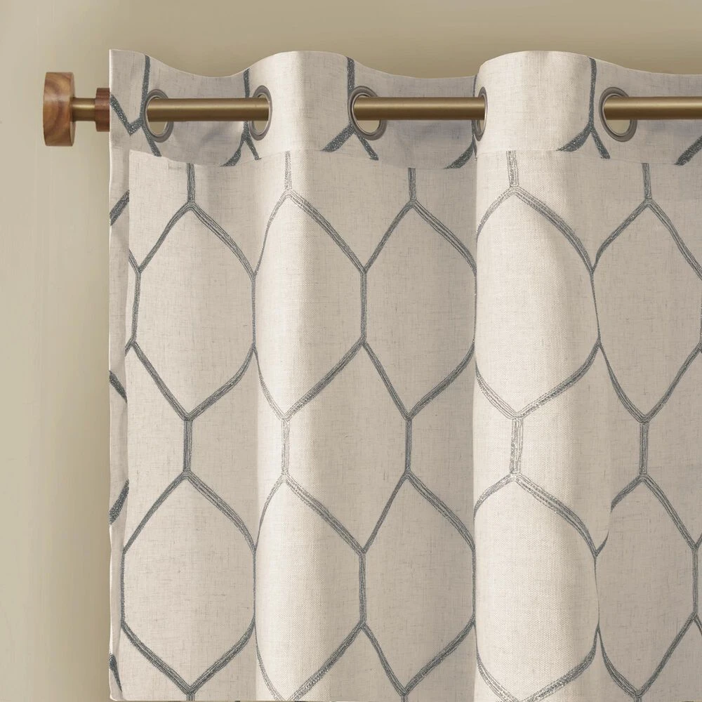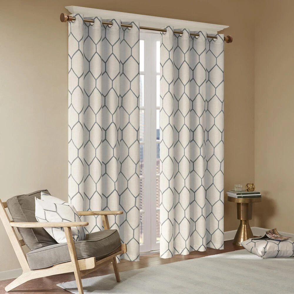 The Madison Park Brooklyn Window Panel provides a stylish and modern update for any room. A grey metallic geo pattern is embroidered on a natural textured fabric, for a subtle and perfect combination of urban glitz. Grommet top detail makes this window curtain easier to hang, open, and close throughout the day. Fits up to 1.25″ diameter rod. This window panel is also OEKO-TEX certified, meaning it does not contain any harmful substances or chemicals, ensuring quality comfort and wellness.