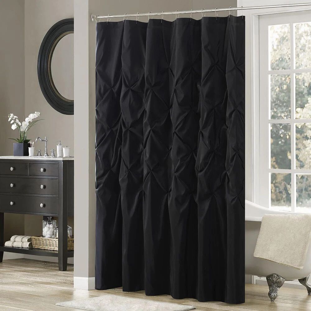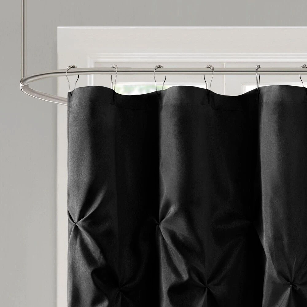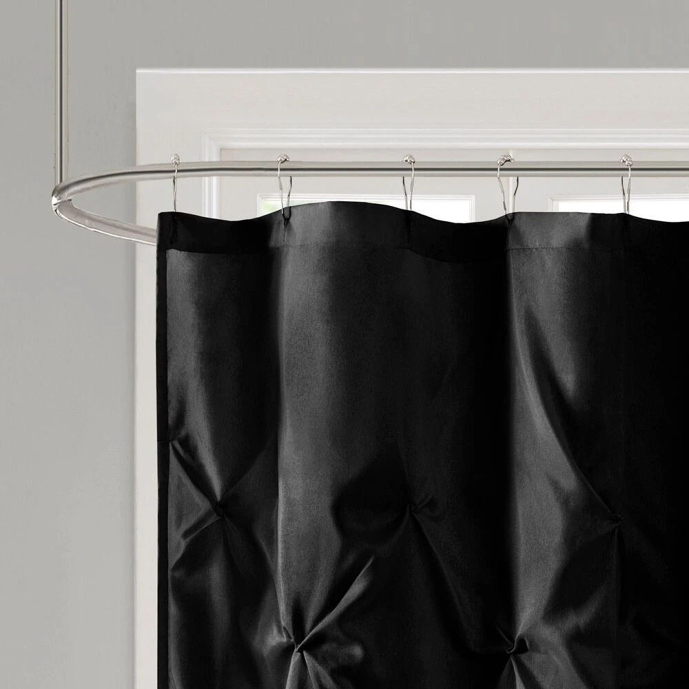 Update your bathroom instantly with the Laurel Shower Curtain. Its soft black color paired with large tufting creates a contemporary look while adding beautiful texture to your space. Made from 100% polyester polyoni, this semi-sheer shower curtain is lightweight with a nice soft sheen and machine washable for easy care. A water repellant liner is not included and highly recommended.