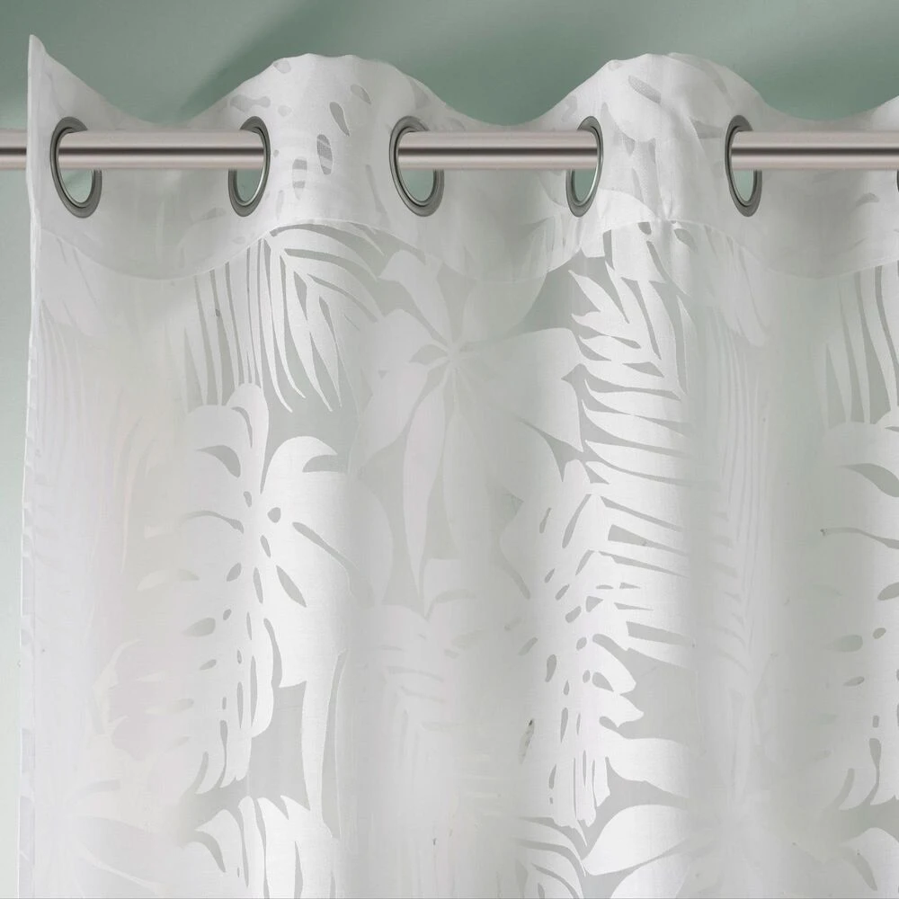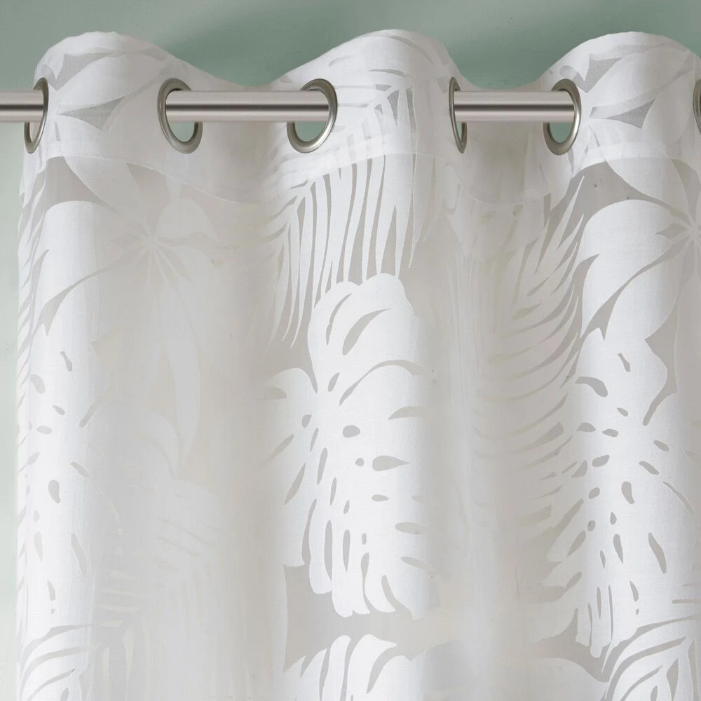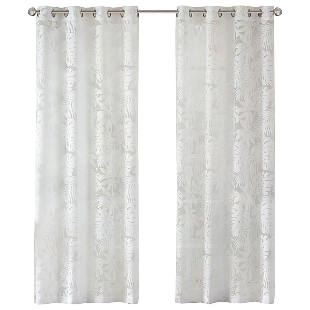 Bring a touch of paradise into your home, with our Madison Park Leilani Palm Leaf Sheer Window Curtain. This panel combines an intricate burnout palm leaf design on a lightweight sheer, creating soft dimension for a relaxed and updated look. This window panel is also OEKO-TEX certified, meaning it does not contain any harmful substances or chemicals, ensuring quality comfort and wellness. The antique silver grommet top finish makes this window curtain easier to hang, open, and close throughout the day. Fits up to a 1.25″ diameter rod.