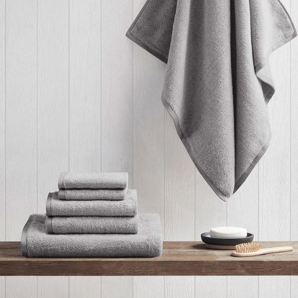 Refresh your bathroom with the modern style of the Woolrich Marle 100% Cotton Dobby Yarn Dyed 6 Piece Towel Set. This 6 piece towel set features a yarn dyed technique, creating a light tonal heathered pattern for a subtle and stylish update; while the solid, clean hem adds a nice contrast and finishing touch. Each towel is made from 600gsm quality terry cotton for a super soft and plush feel, while also highly absorbent and durable. Machine washable for easy care, these towels are also OEKO-TEX certified, meaning it does not contain any harmful substances or chemicals, for quality comfort and wellness. Set includes: 2 Bath (28″x54″), 2 Hand (16″x26″), and 2 Wash (12″x12″) towels.