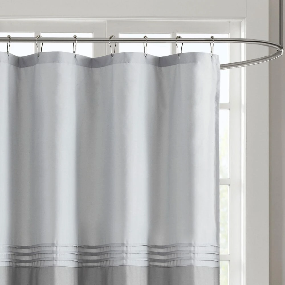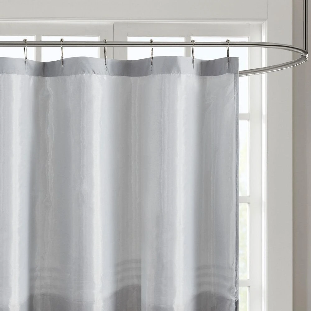 Complete your bathroom with the charm of our 510 Design Ramsey Printed and Embroidered Shower Curtain. This microfiber shower curtain features a printed and pieced design in cool grey hues for a soft and traditional look. Elegantly embroidered details add a sophisticated touch, while an added lining provides better draping and added privacy. Machine washable for easy care, this embroidered shower curtain provides a graceful update to your bathroom decor.