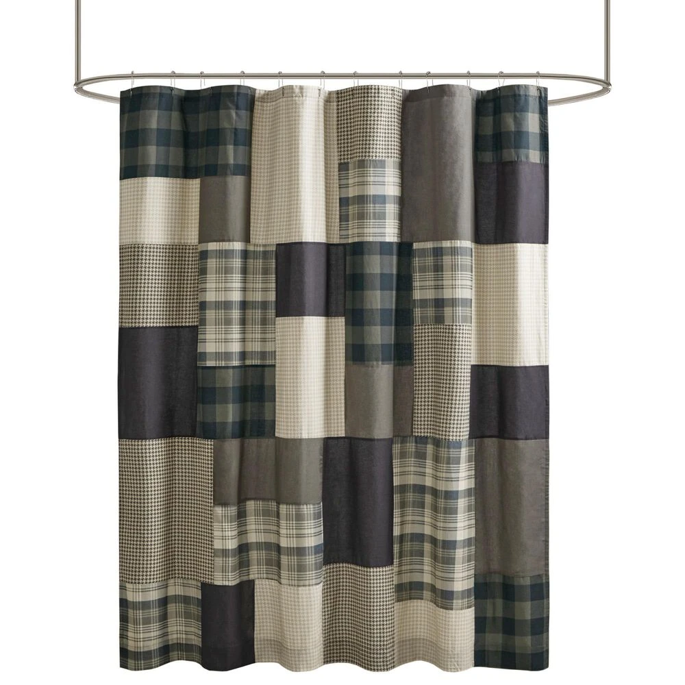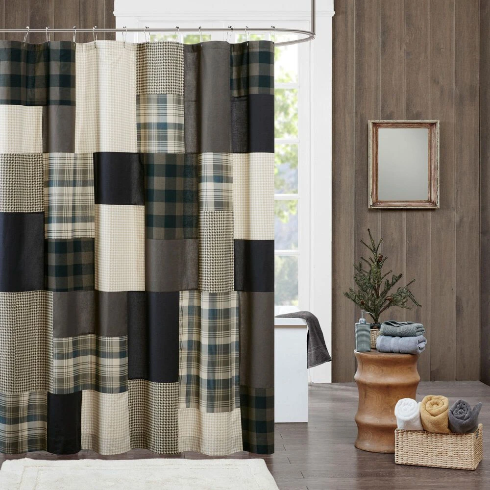 Create a striking look in your space with the Woolrich Winter Hills Collection. This 144 thread count light weight cotton shower curtain features several different plaids and solids pieced together for the perfect balance in this lodge look.