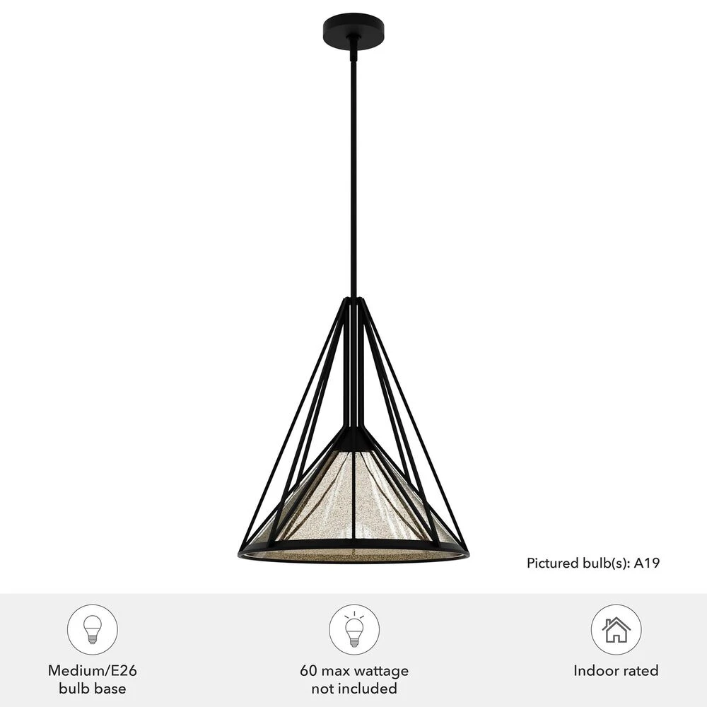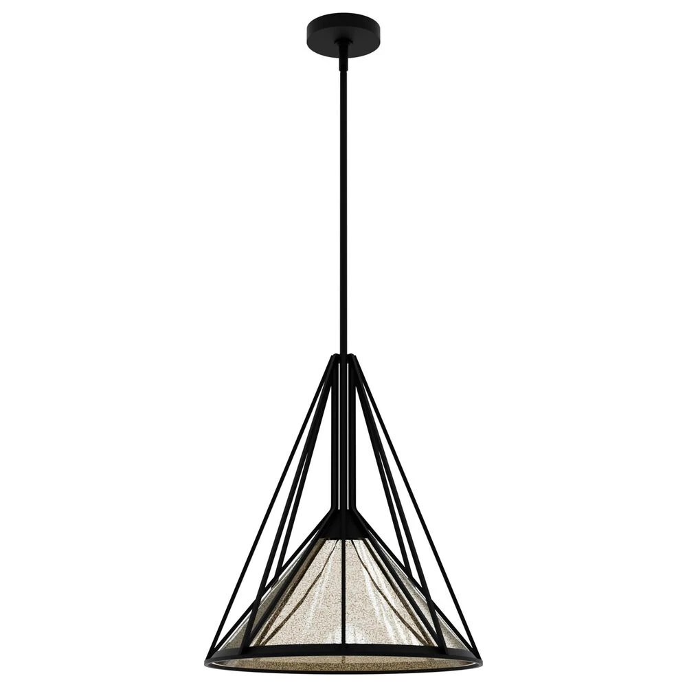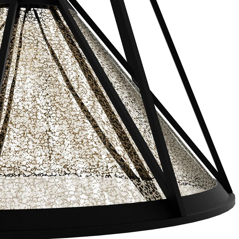 The Rafner large pendant leaves no doubt that your style is cutting edge. This fixture demands attention with its mercury glass held as if suspended in place by sleek metal bands forming a conical shape. Hang more than one fixture from the Rafner collection for a truly dramatic effect. Mix and match with fans from our ceiling fan collections to fully finish your space.