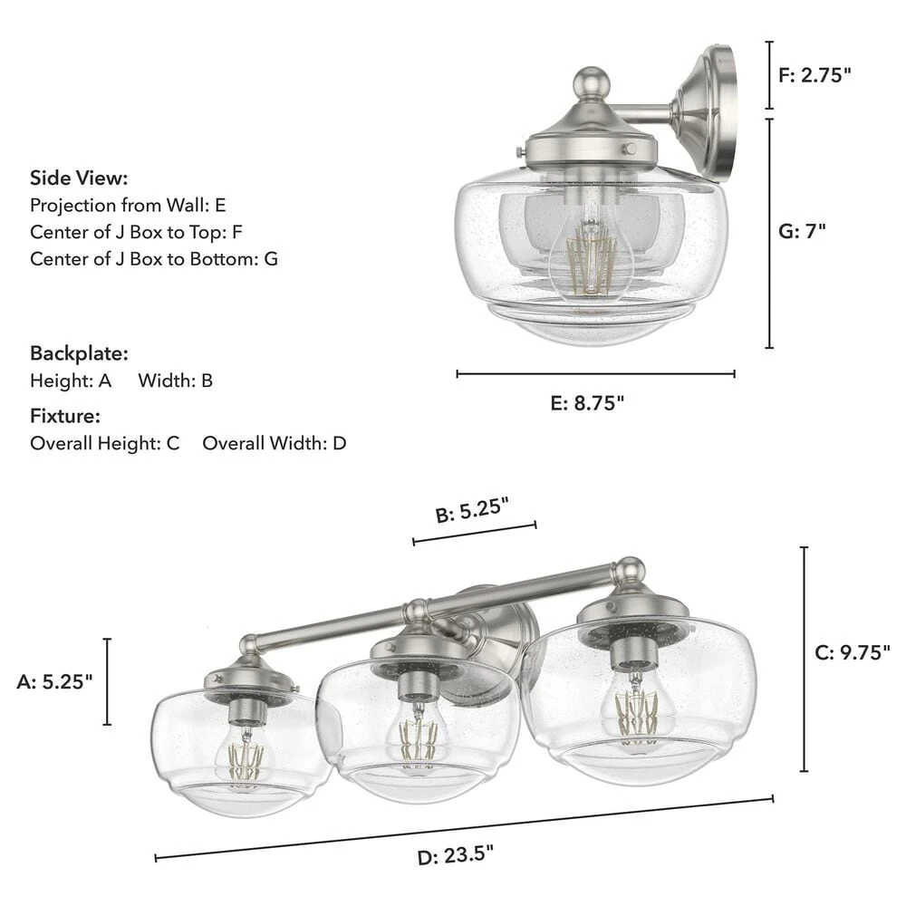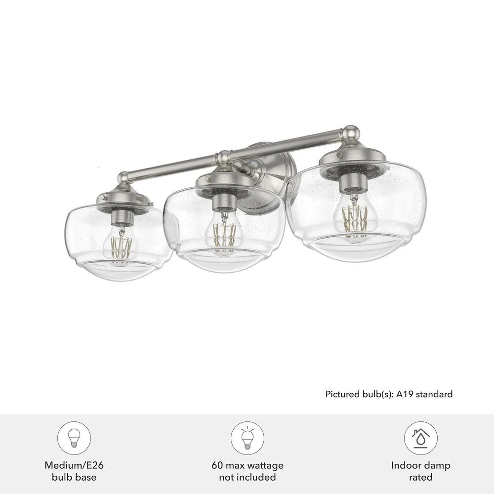 Hunter Saddle Creek 3-Light Vanity With Clear Seeded Shade In Brushed Nickel