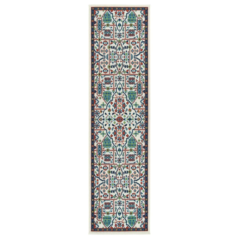 Kaleen Rugs Sunice 2’2″ X 8′ Ivory, Navy, Tangerine, Lime Green And Light Blue Runner