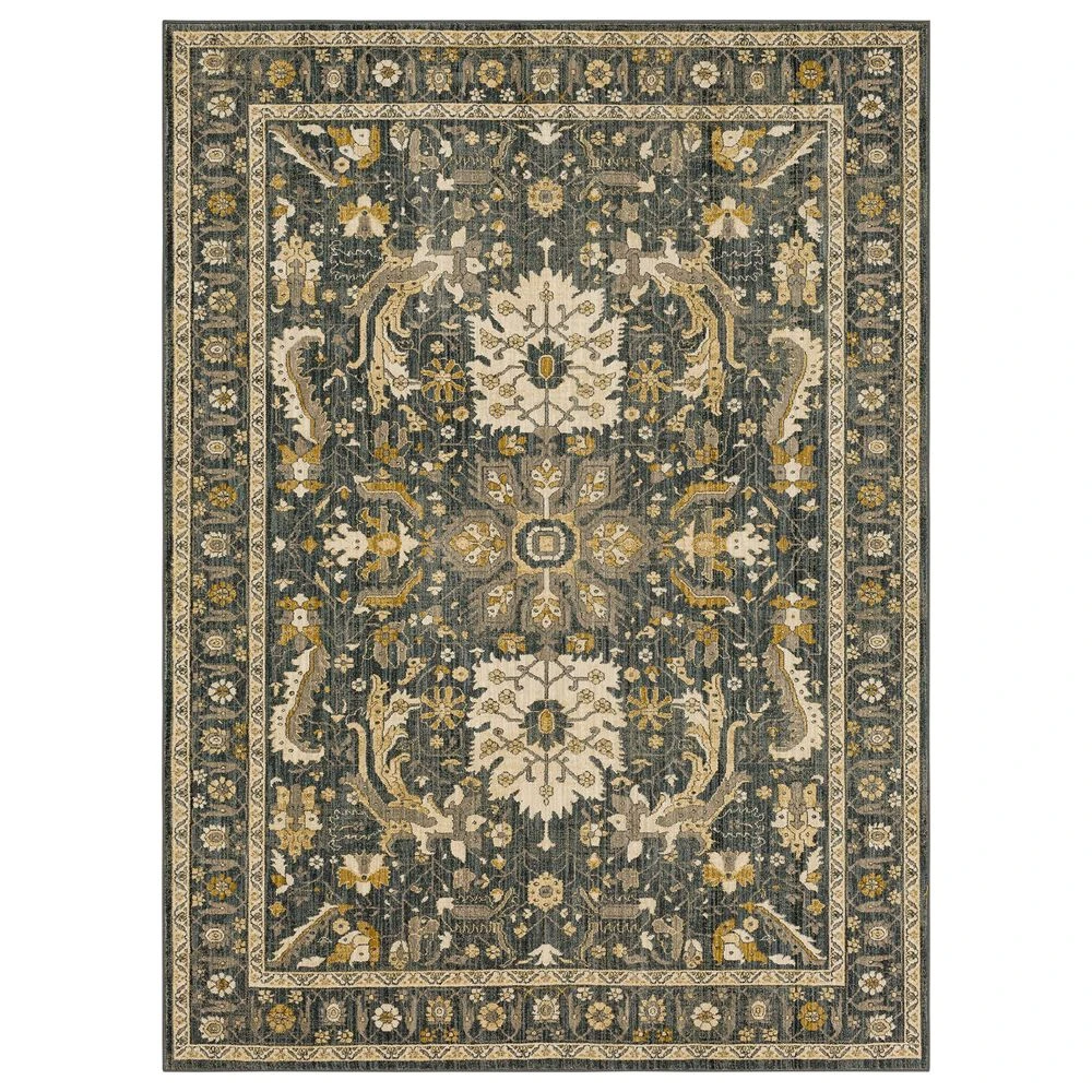 Bold and beautiful, the Bobby Berk by Karastan Amara area rug in denim showcases timeless Persian inspired artistry in a rich overdyed palette of dark navy blue, grey, neutral beige and olive green. A creative collaboration between design guru, Bobby Berk, and renowned luxury flooring maker, Karastan, the curated styles of this collection mix legendary craftsmanship with hip, urban style. Ideal for enchanting entryways, living rooms, bedrooms, offices, dining areas and more, the patterns of this collection reflect Bobby Berk’s signature style, infused with a youthful spirit that perfectly fits any lifestyle. Thoughtfully rendered with a blend of the finest quality yarns, this collection is designed to beautifully wear overtime for an enduring elegance that lasts.