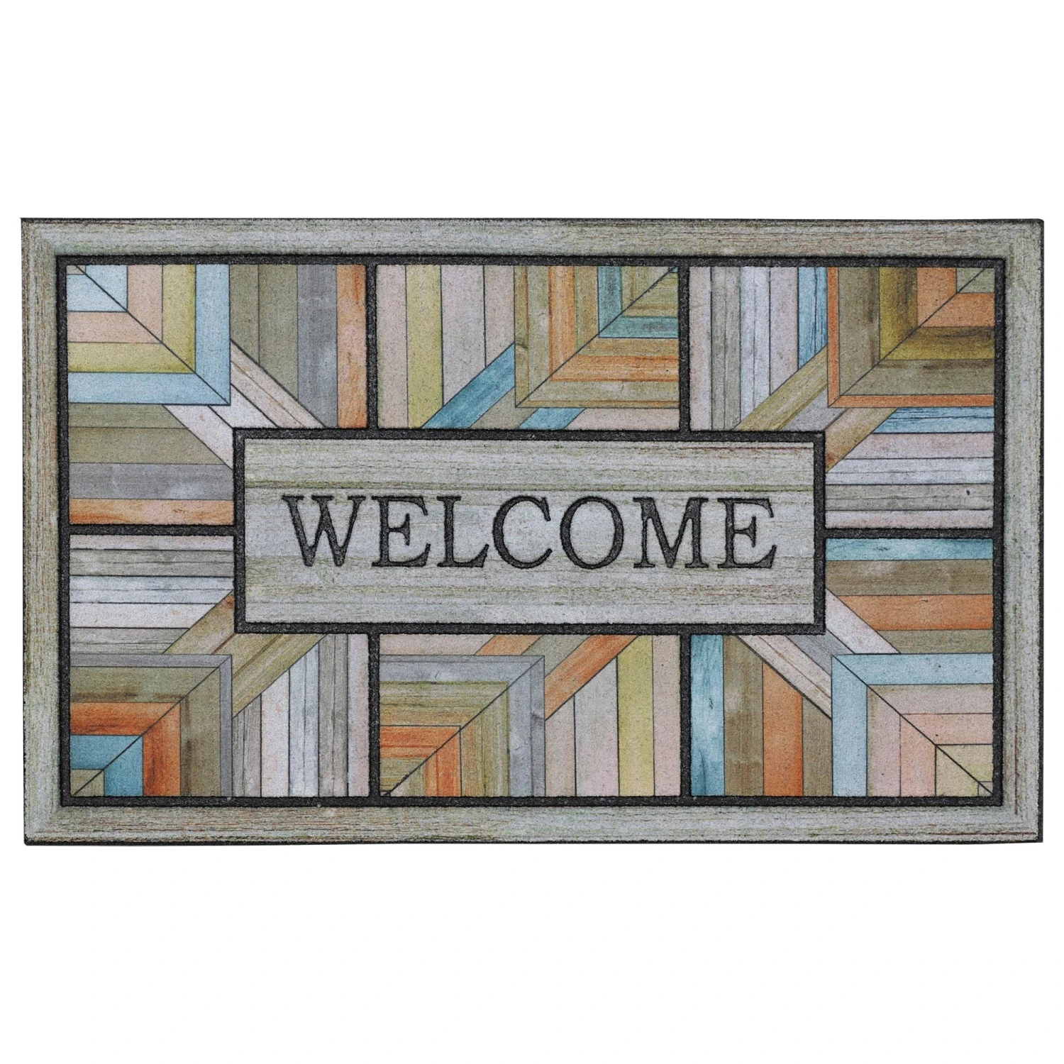 Silhouettes of the outdoorsman’s favorite folly are filled with synonymous words for a front door statement that speaks to an adventurous spirit in Mohawk’s Woodland Words Block Doormat, size 18 x 30. Environmentally friendly, this doormat is backed with the dependable durability of 1 percent recycled rubber, one of the largest and most hazardous types of post-consumer waste. Annually Mohawk recycles over 3 million pounds of rubber tires and gives them new life as designer doormats. The recycled rubber doormats of this collection have a high definition decorative top surface design constructed of a 1 percent polyester flock. This top surface absorbs moisture and is ideal for scraping dirt from shoes before its tracked indoors.
