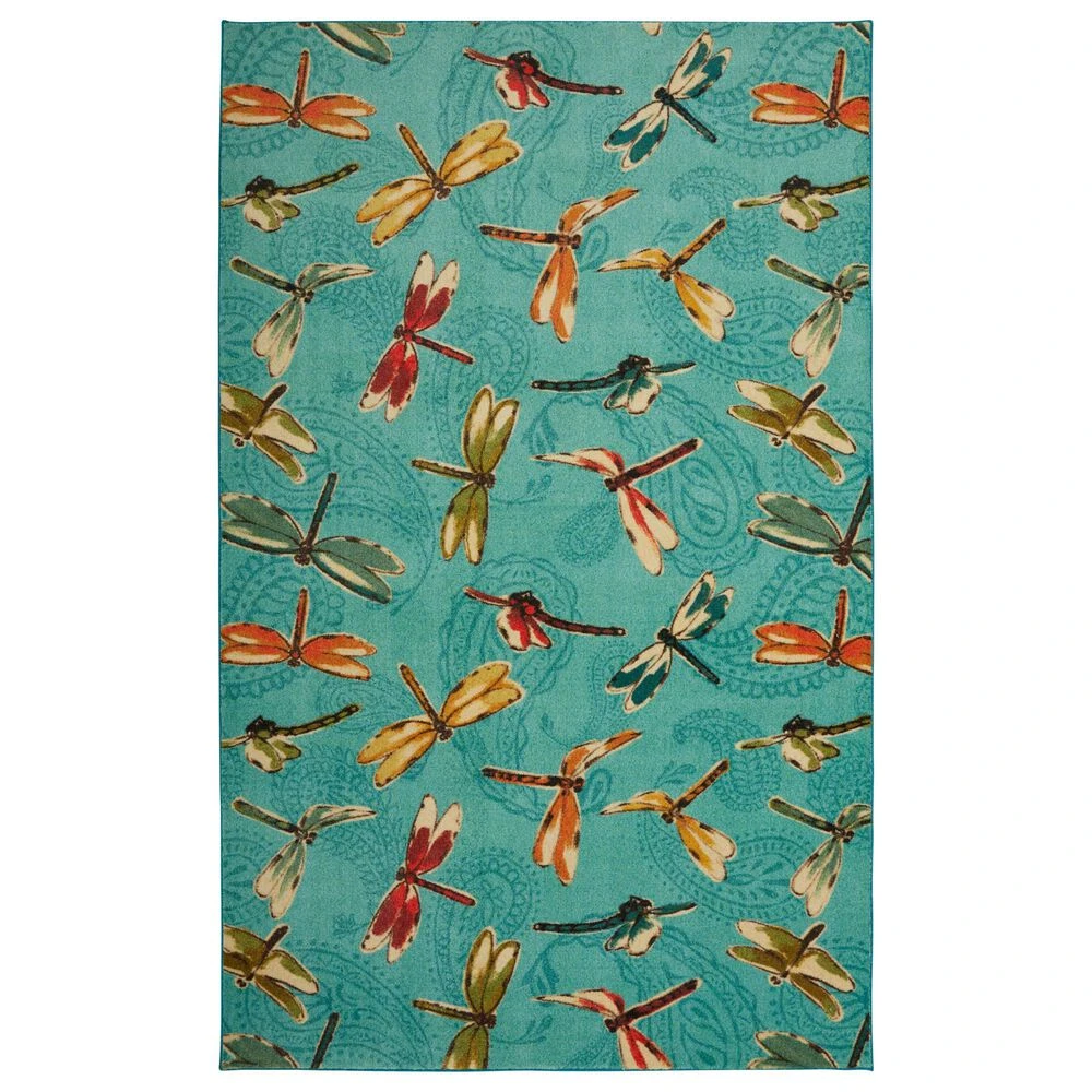 A modern multicolored medley of dragonflies soars over the teal aqua blue colored contemporary canvas of Mohawk Homes Summer Dragon Flies Area Rug. Fun and fresh for kids corners or anywhere you crave a little more color, this whimsical nature inspired design is sure to wake up any space! When it comes to color, the sky is no longer the limit with the infinite possibilities of Mohawk Homes revolutionary Prismatic Collection. Thoughtfully crafted in the U.S.A. in small batches utilizing Mohawk Homes exclusive Precision Dye Injected Printer, the Prismatic Collection is redefining printed rugs, literally one original design at a time. Each style in this collection features superior strength, stain resistance and a cozy soft touch. Consciously created with EverStrand yarn, Mohawk Homes exclusive premium recycled polyester produced from post-consumer plastic water bottles, this collection offers environmentally friendly options that are as easy on the eyes as they are the world around us.