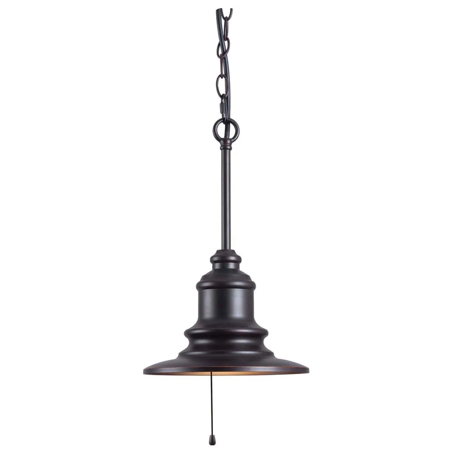 Simple and elegant in design, this 1 light outdoor pendant features a rich oil rubbed bronze finish and a gorgeously detailed frame with subtle nods to industrial and coastal design. Infused with plenty of traditional nautical style, this 10-inch diameter pendant has a wide graduated width barn-style shade, creating bright, area-filling downlighting perfect for use above your outdoor living room tables and sectional. No need to call an electrician with this pendant simply mount it in your pergola, gazebo or sunroom and plug it in to instantly enjoy the warm atmospheric glow.