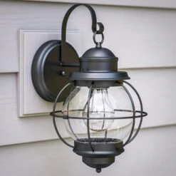 A sophisticated, yet casual accent on your front porch, this small lantern will guide your guests to your modern country cottage with style and grace. The rich forged graphite finish and clean, simple lines lend a modern look to this casual wall sconce, yet slight warm undertones and the crystal-clear seeded glass shade pulls you in with inviting light. Perfect for entryways, install a lantern on either side of your cross-braced front door to create a modern farmhouse vibe for your home. This lantern is equally well-suited for barns, garages, sheds and pathways with its bright light and easy installation. To really drive home the farmhouse feel, use a vintage style Edison bulb or other designer bulb and add your own flair to this versatile piece.