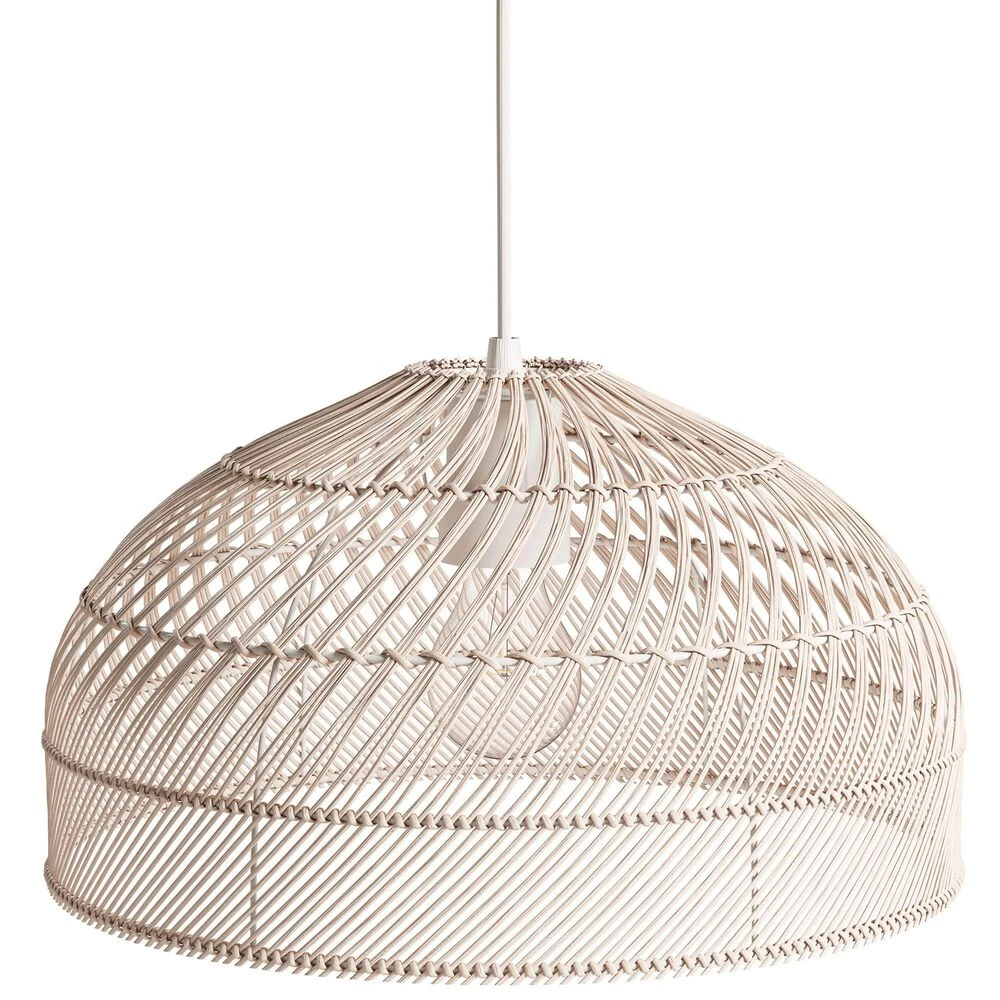 - Open weave tropical boho 1 light pendant with woven basket weave pattern naturally finished rattan