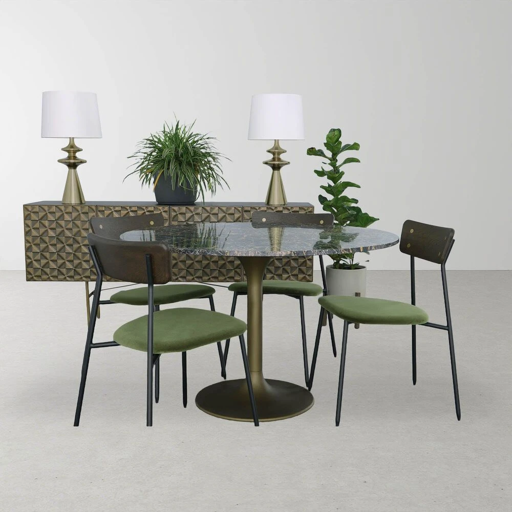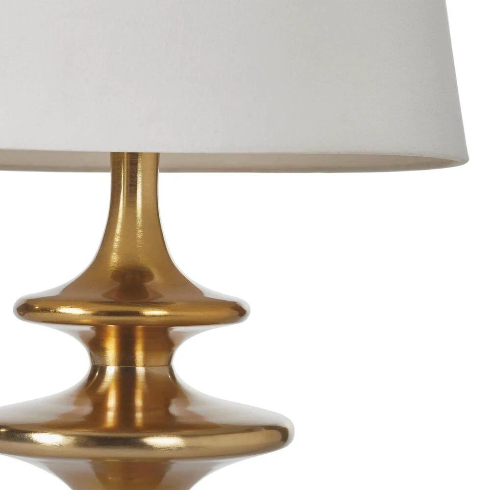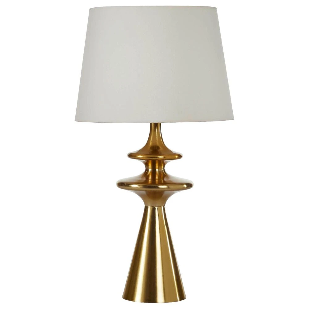Striking art deco design meets classic lamp style and creates a unique final product. Made with aluminum and linen for the frame.
