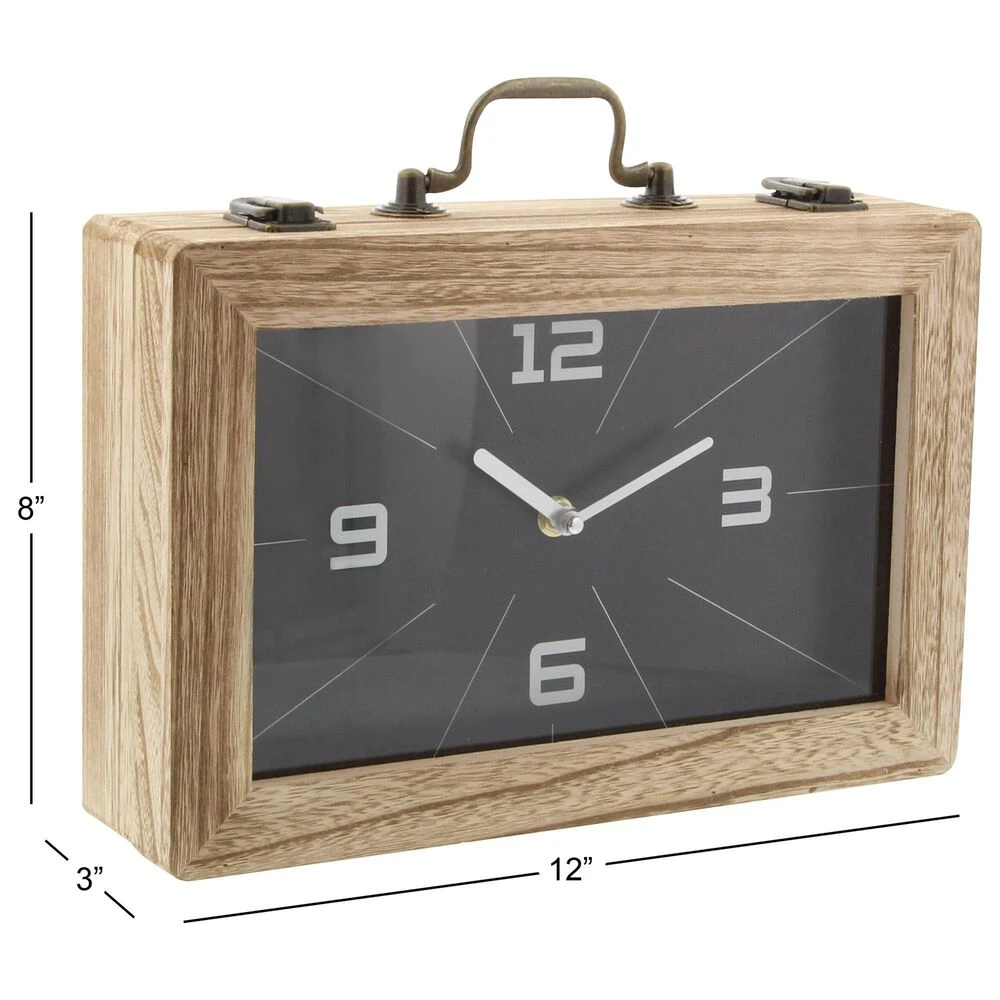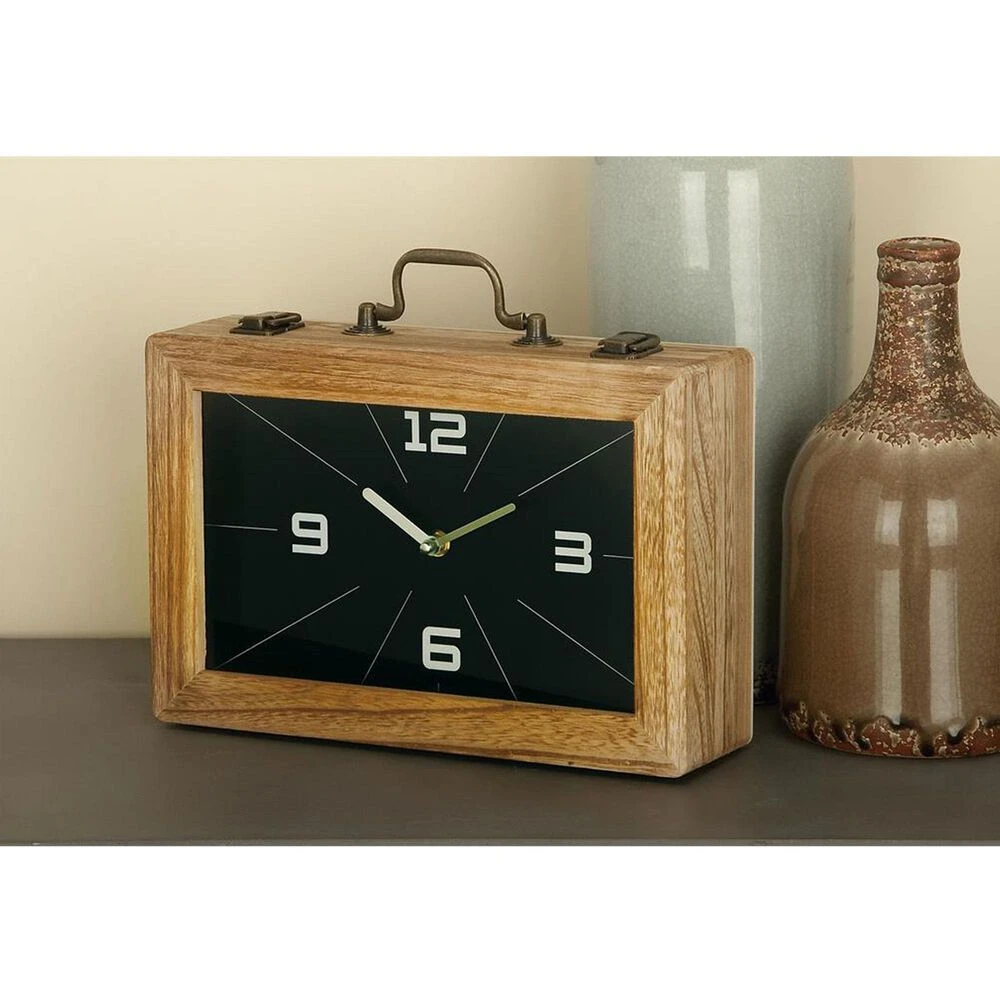 Improve your time management skills and keep a clock close by with this charming piece. A dashing display on any surface to help you manage your time throughout the day. Placed on your console or coffee table, this table clock is sure to be a timeless addition to your home or office. Designed with black rubber stoppers at the base that prevent scratching furniture and table tops, as well as sliding around. Requires 1 AA battery. Battery not included. This item ships in 1 carton. Features Arabic numerals for 12, 3, 6, 9 markers. The clock mechanism runs silent. Suitable for indoor use only. Farmhouse Design.