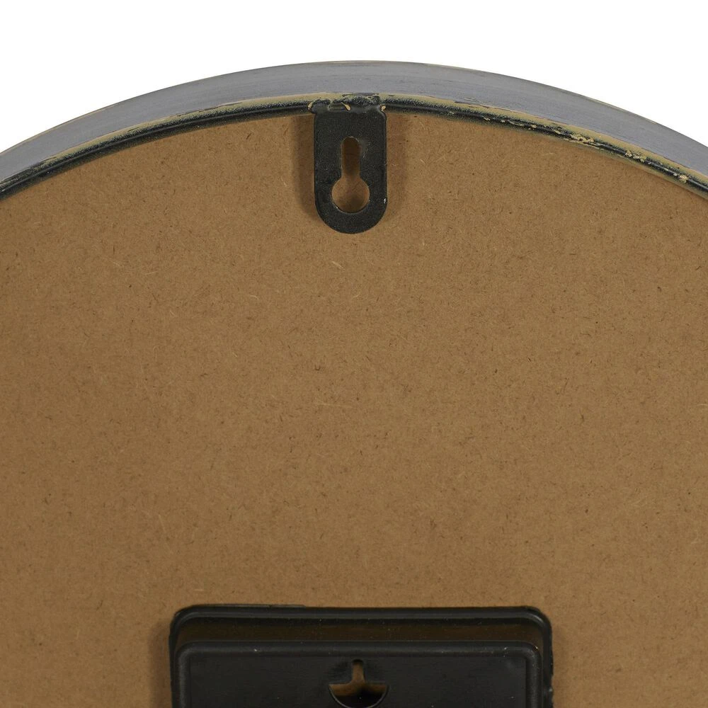 Influence by vintage design, this clock will render a rustic feel to any living space. Requires 1 AA battery. Battery not included. This item ships in 1 carton. Roman numerals for the hour markers. The clock mechanism runs silent. Metal secure loop backing for easy hang; nails and screws are not included. Suitable for indoor use only. Farmhouse-styled style.
