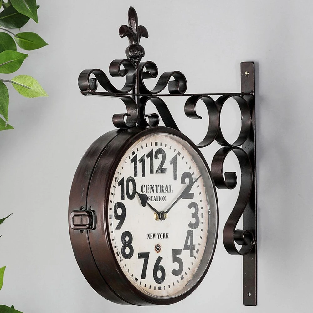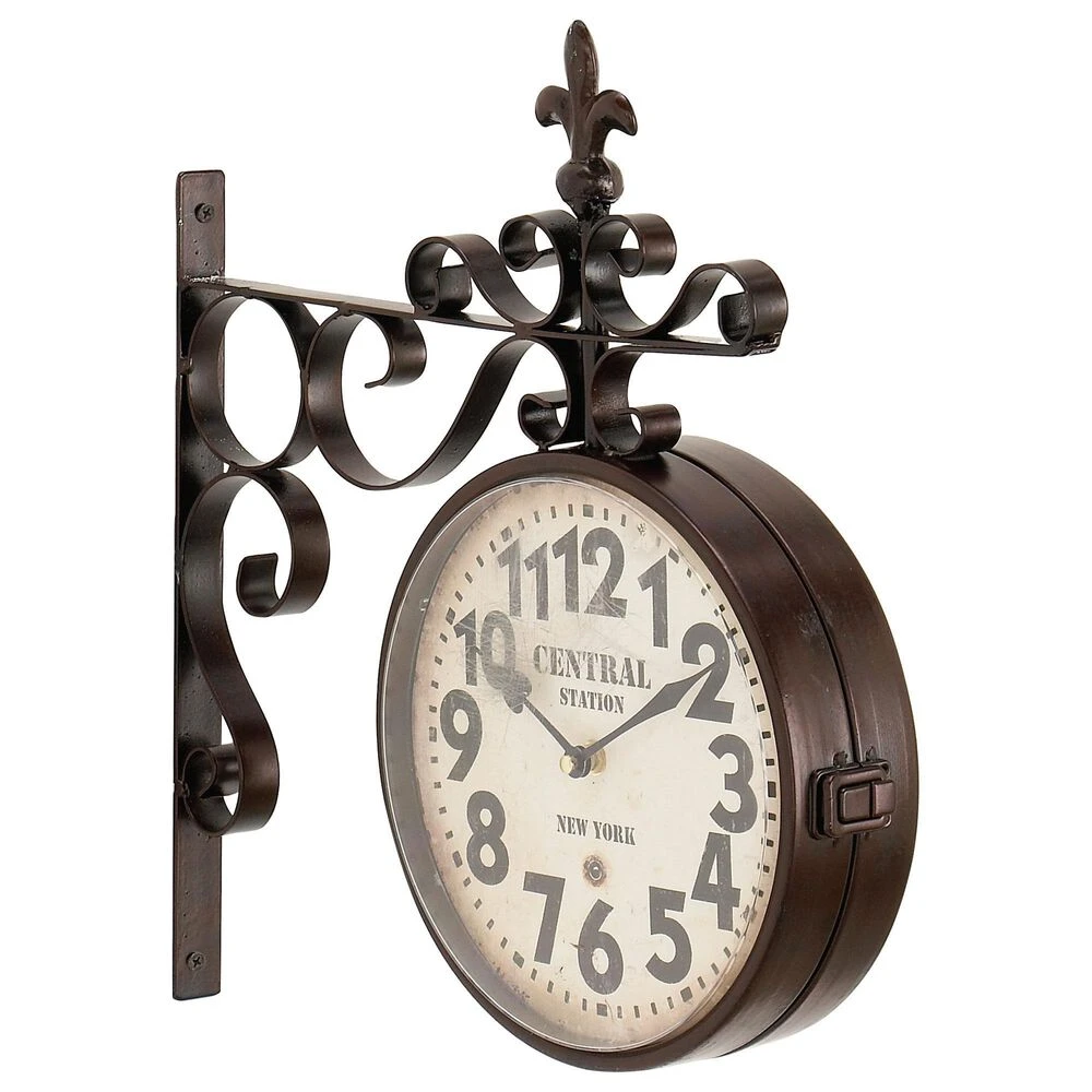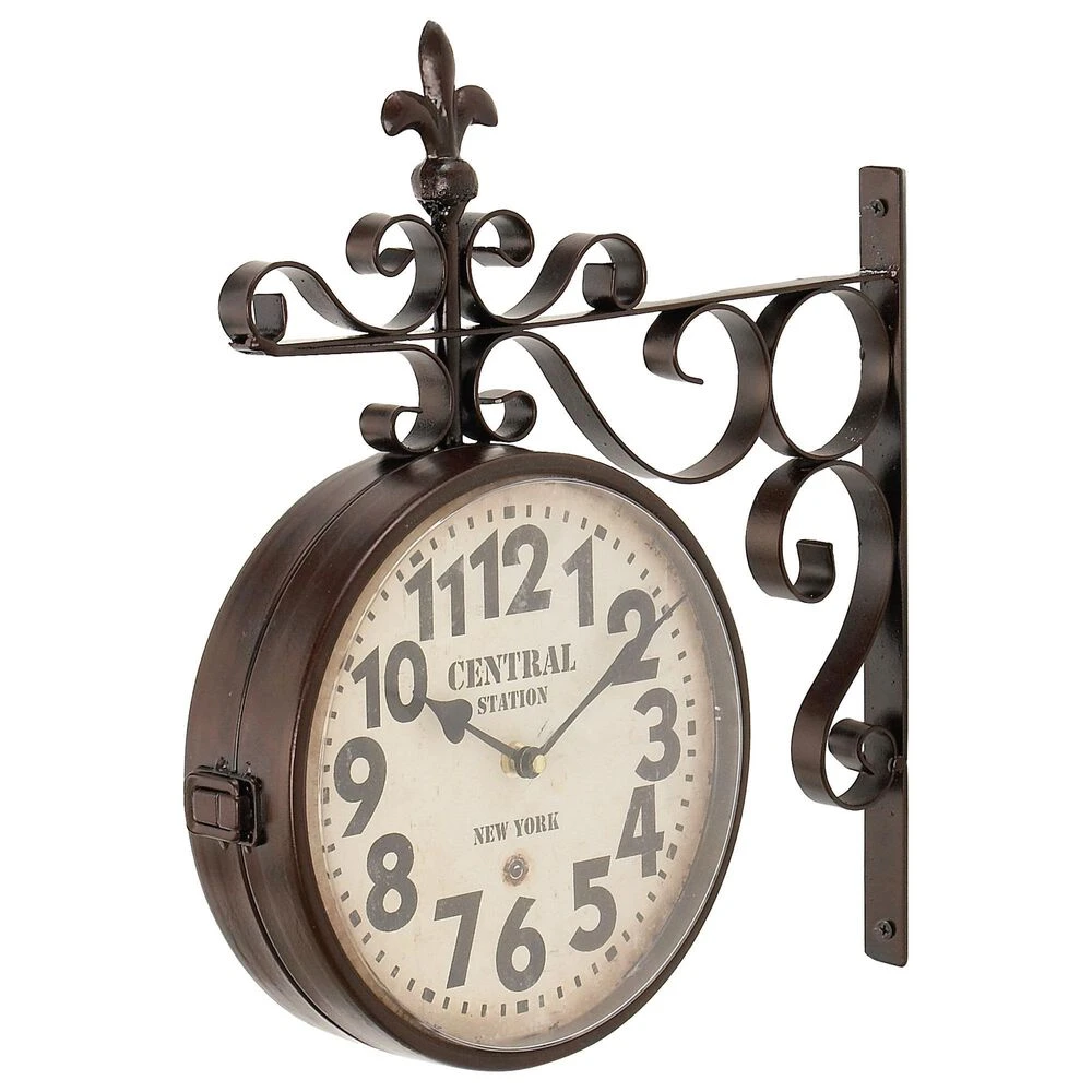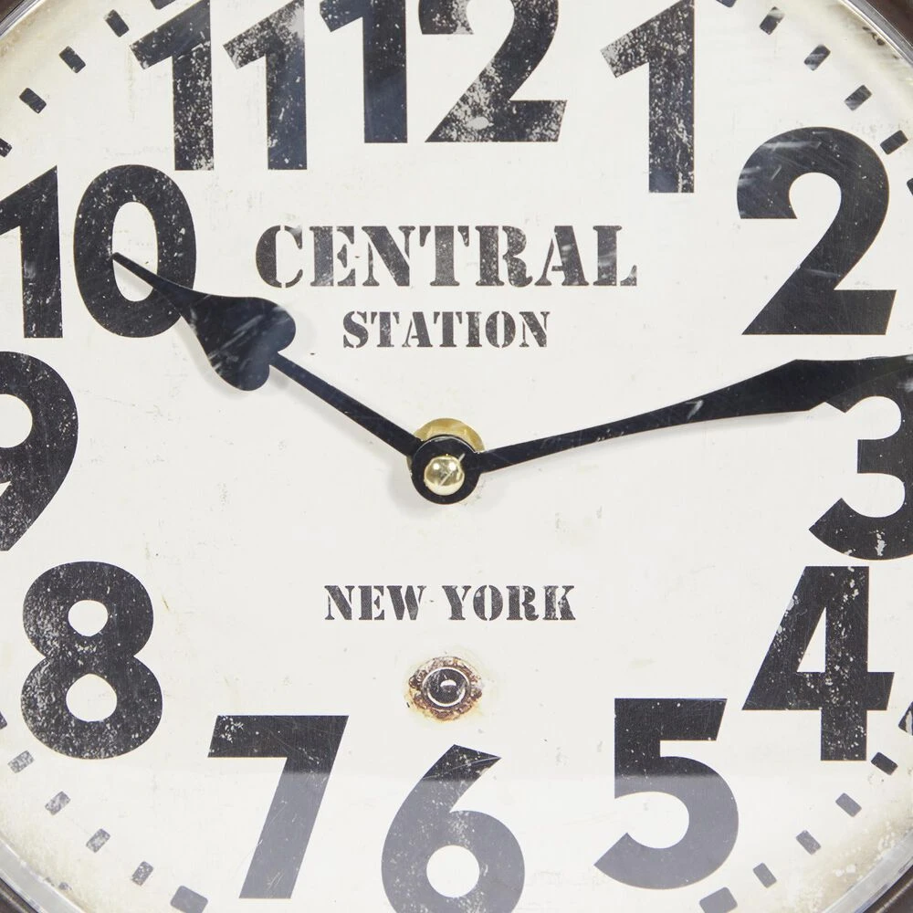 The vintage design of this home decor brings a sense of the past to your home.. Requires 1 AA battery. Battery not included. This item ships in 1 carton. Features Arabic numerals for the hour and minute markers. The clock mechanism runs silent. Item comes with a metal bar for easy and secure hanging. Suitable for indoor use only. Vintage style. Clock face reads “Central Station, New York”.