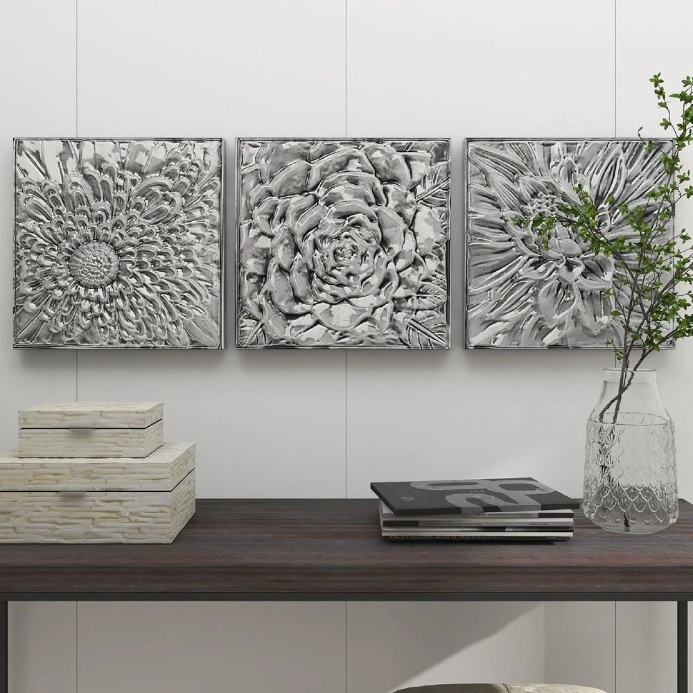 Create an excellent focal point on your walls paired with some cute accent tables, and level up your home with this amazing wall Decor. It makes a great centerpiece over your sofa or in your dining room. Hang the panels in a living room or dining room to add natural flair to the space. Hardware on the back allows for easy hanging. Suitable for indoor use only. The set includes three plaques. Contemporary theme. Hardware on the back allows for easy hanging. This item comes shipped in one carton.