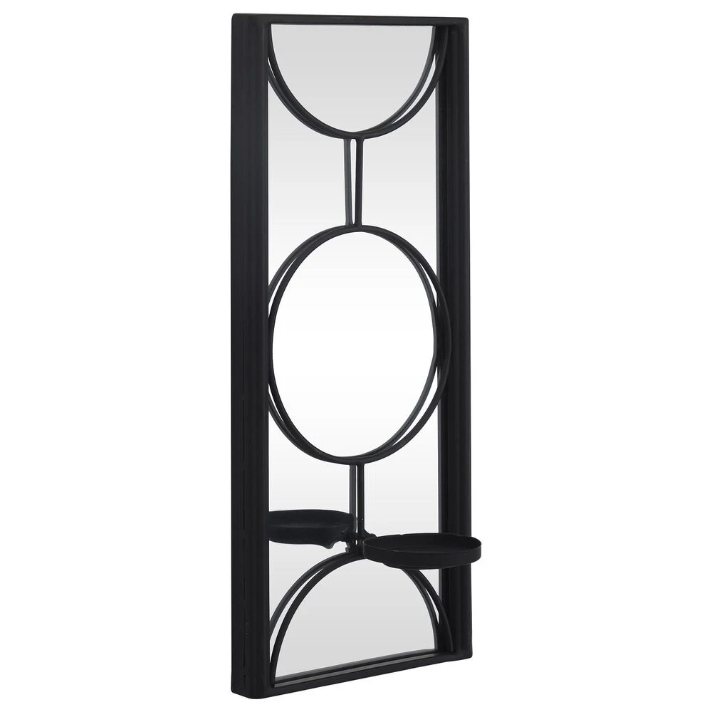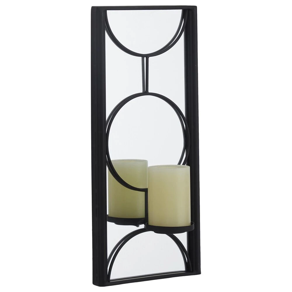 - Black finish highlights the frame of this wall sconce candle holder