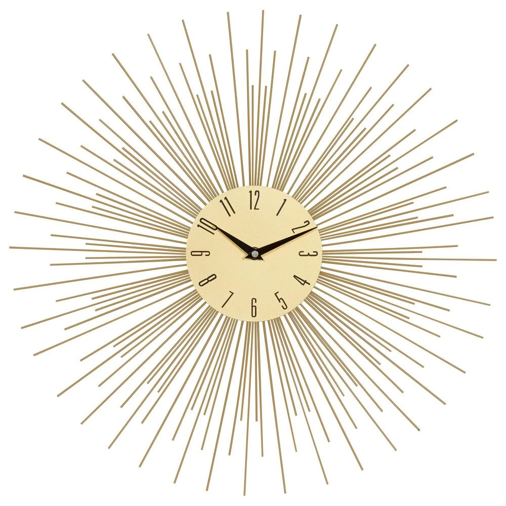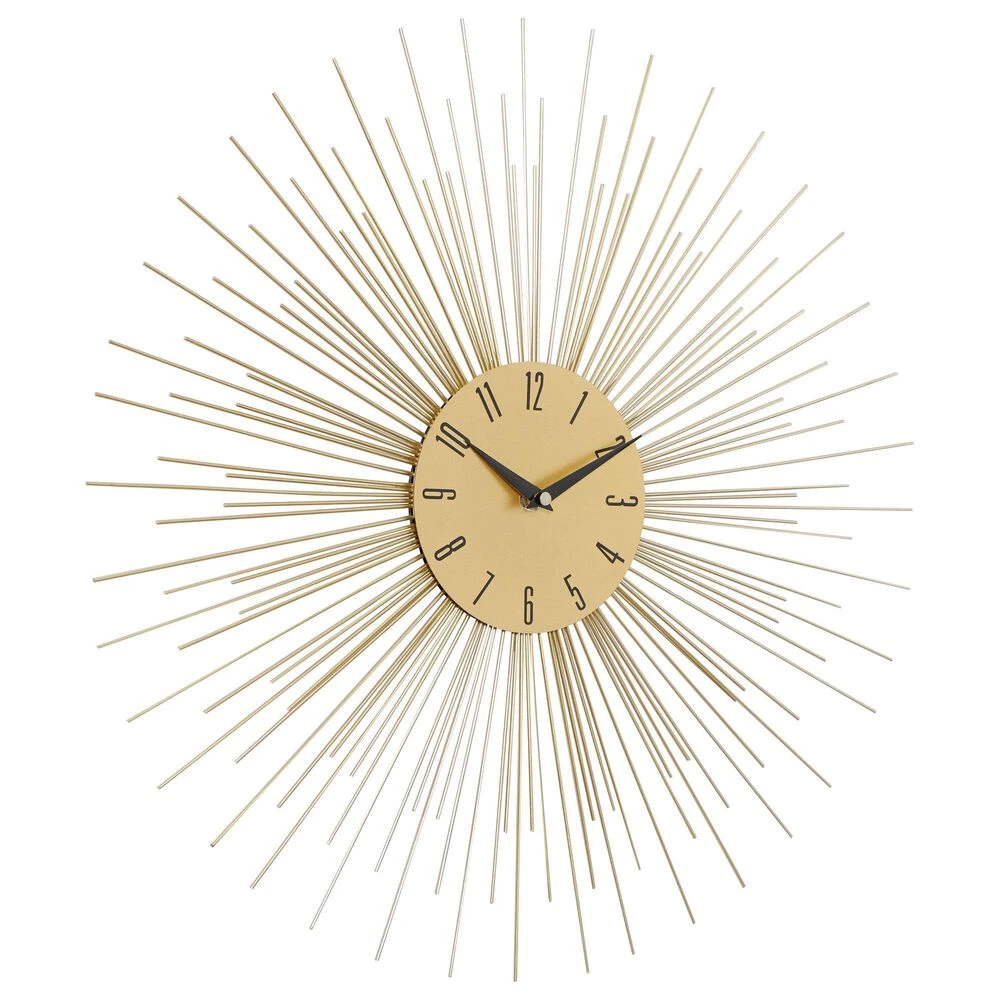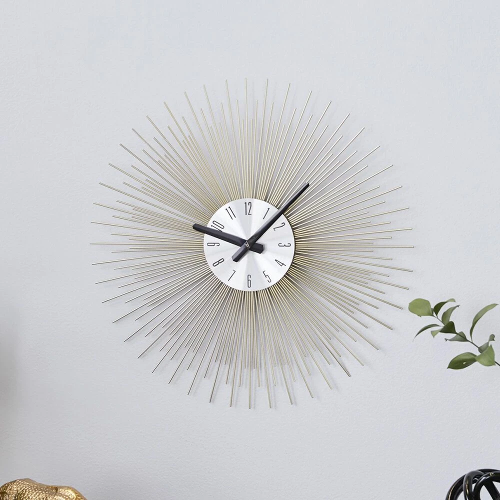 - Round shaped clock with metal spike lines to mimic sunshine rays
