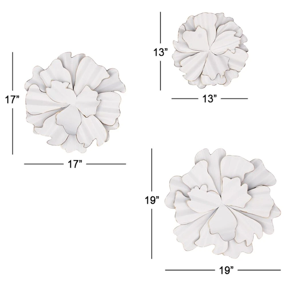 Create an excellent focal point on your walls paired with some cute accent tables, and level up your home with this amazing wall Decor. It makes a great centerpiece over your sofa or in your dining room. Position the flowers together in a modern living room, bedroom, or hallway. Metal hangers on the back of the panel allow for easy decorating. Suitable for indoor use only. The set includes three flower heads. Modern theme. This item comes shipped in one carton.