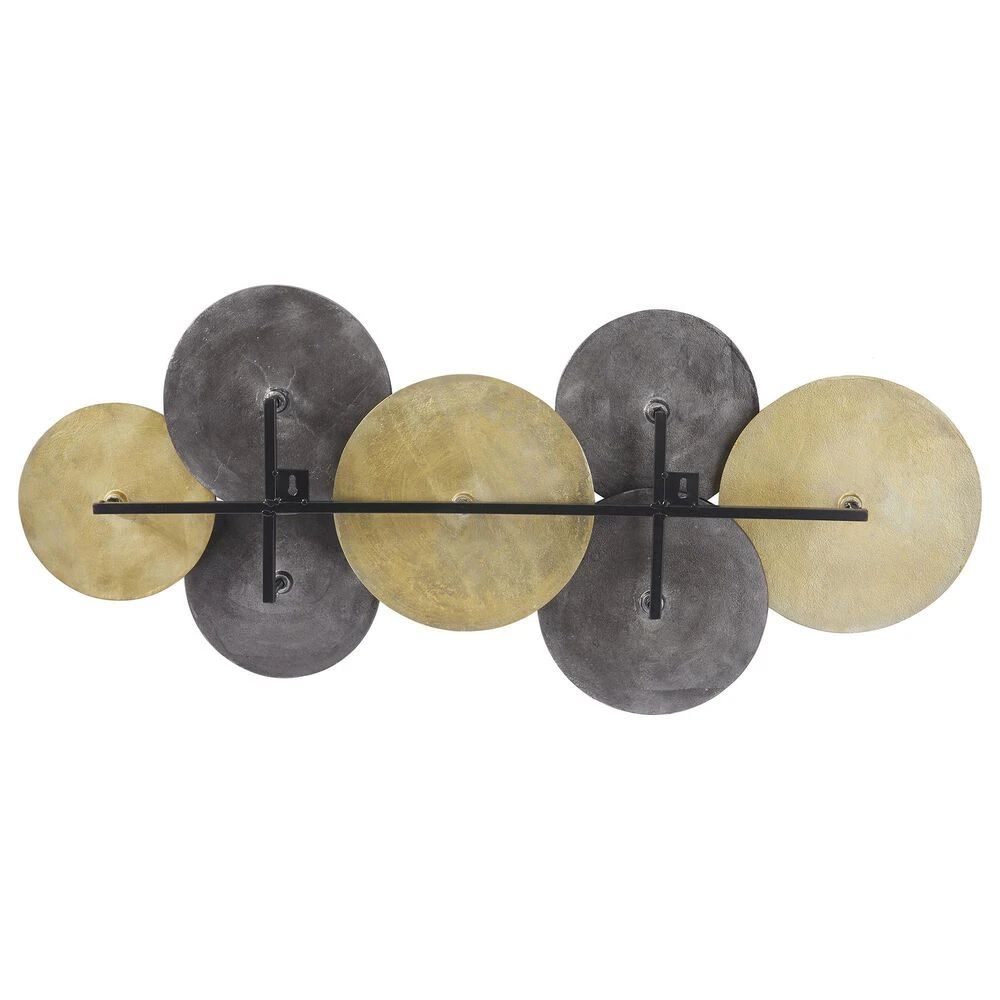 - Large round metal plate wall decor featuring a collection of overlapping circular pieces creating a 3D dimensional artistic display