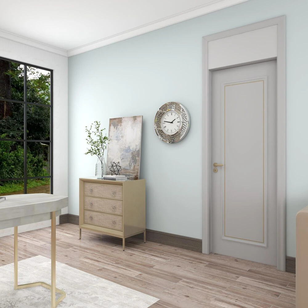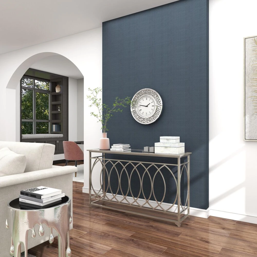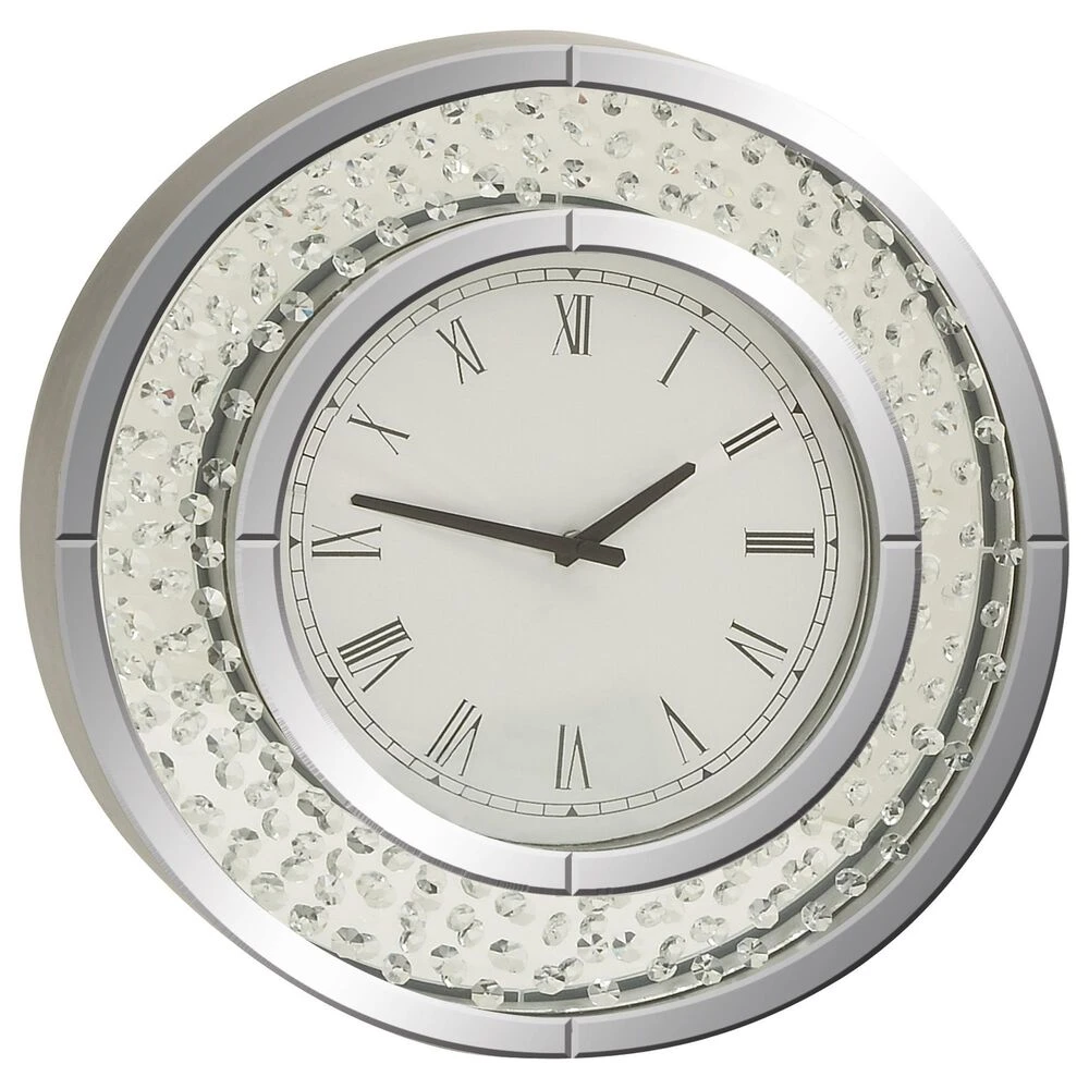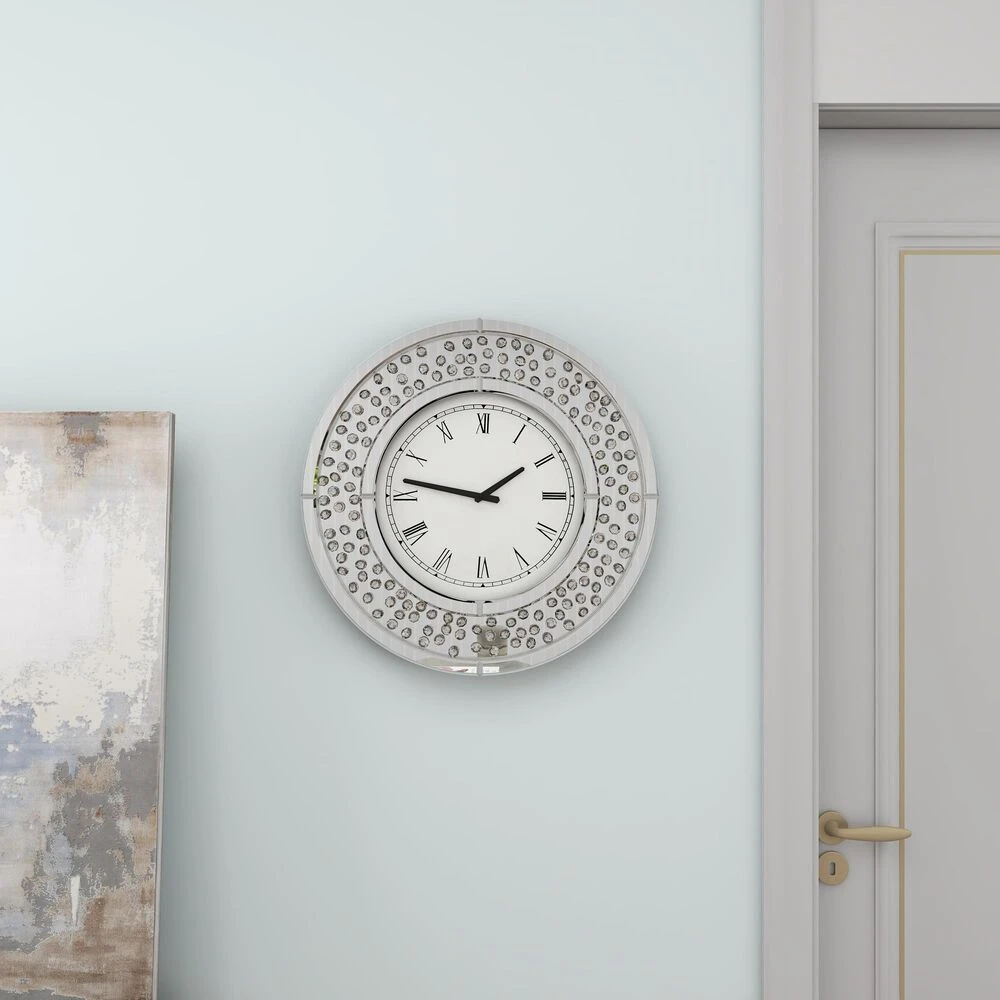 This stunning wall clock is ideal for modern, art deco, and glam-themed living spaces. Requires 1 AA battery. Battery not included. This item ships in 1 carton. Features Roman numerals for the hour and minute markers. The clock mechanism runs silent. 2 D ring hooks on the upper sides allow for easy hanging via a nail or screw. Suitable for indoor use only. Glam style.