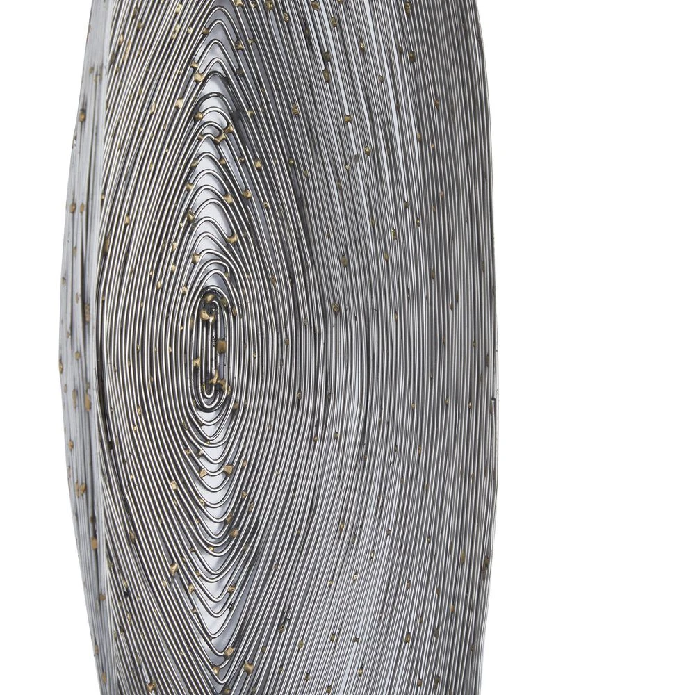 - A contemporary candle holder featuring a diamond-shaped frame in a silver finish designed with oval spiral pattern and small bronze accents connected to a sturdy round metal plate that can accommodate votive or pillar candles