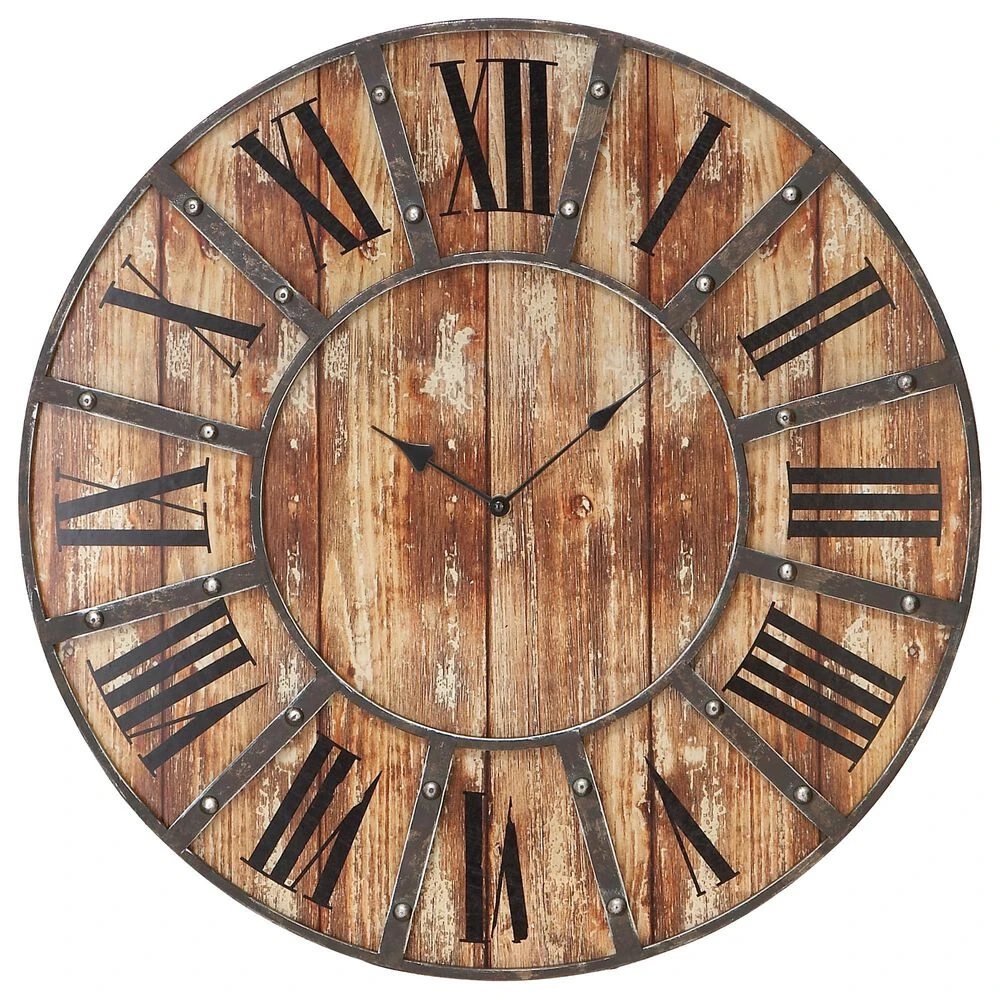 - Large round metal and wood wall clock