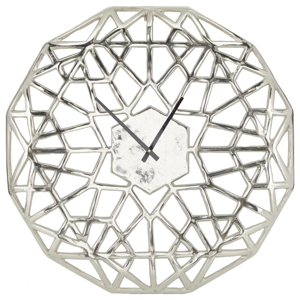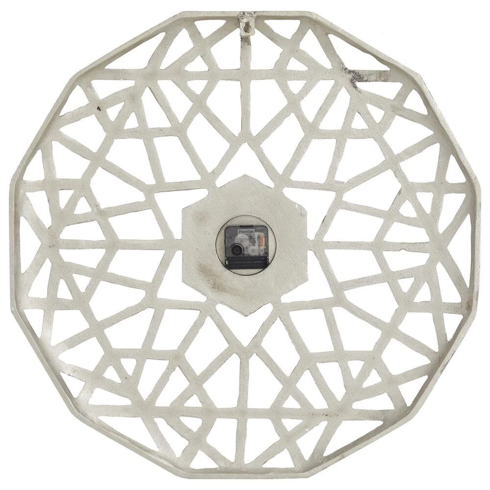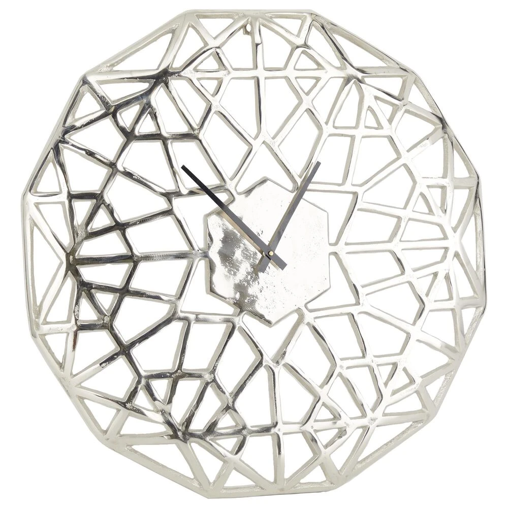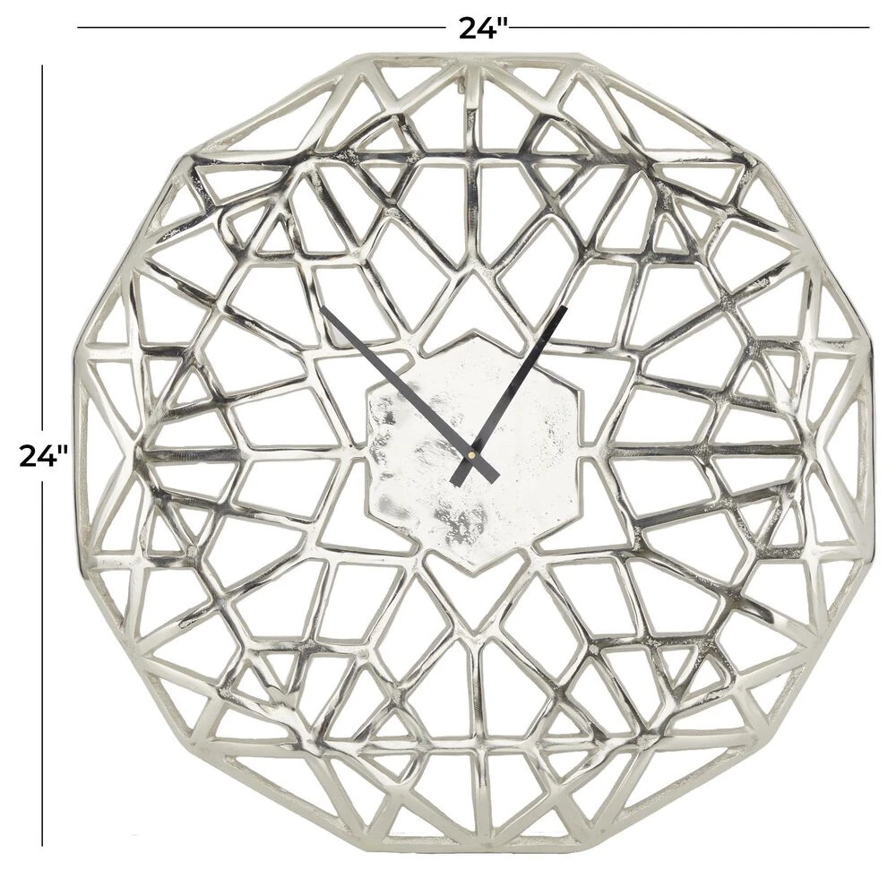 Like a functional art piece for your wall, this round wall clock will become a focal point or finishing touch for any room in your contemporary-themed home with its striking cut-out design. Requires 1 AA battery. Battery not included. This item ships in 1 carton. This silver wall clock accentuates an open-designed clock face with minimalist straight clock hands. The clock mechanism runs silent. Item comes with metal hardware at the back for easy and secure hang. Suitable for indoor use only. Made in India. Contemporary Style.