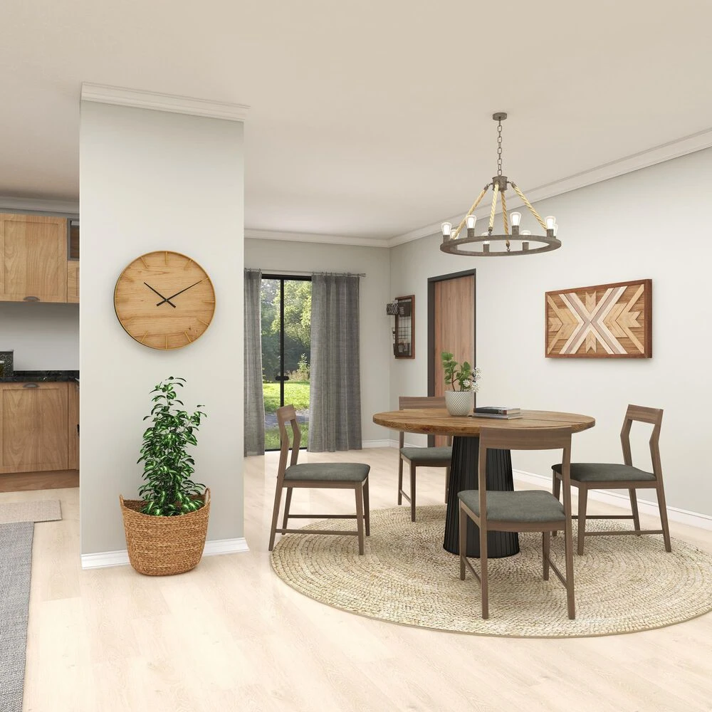 Hang this rustic-style clock at about eye level in your entryway, hallway, or living room. Requires 1 AA battery. Battery not included. This item ships in 1 carton. The wood clock face has a minimalistic, numberless face. The clock mechanism runs silent. Wall clock hangs via a built-in keyhole backing. Suitable for indoor use only. Rustic style.