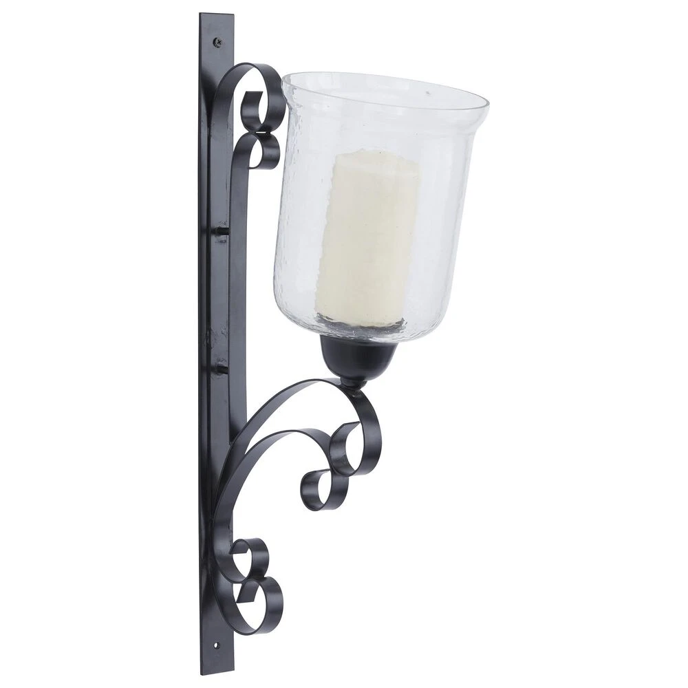 - A pillar candle wall sconce made of solid and lasting metal and glass materials