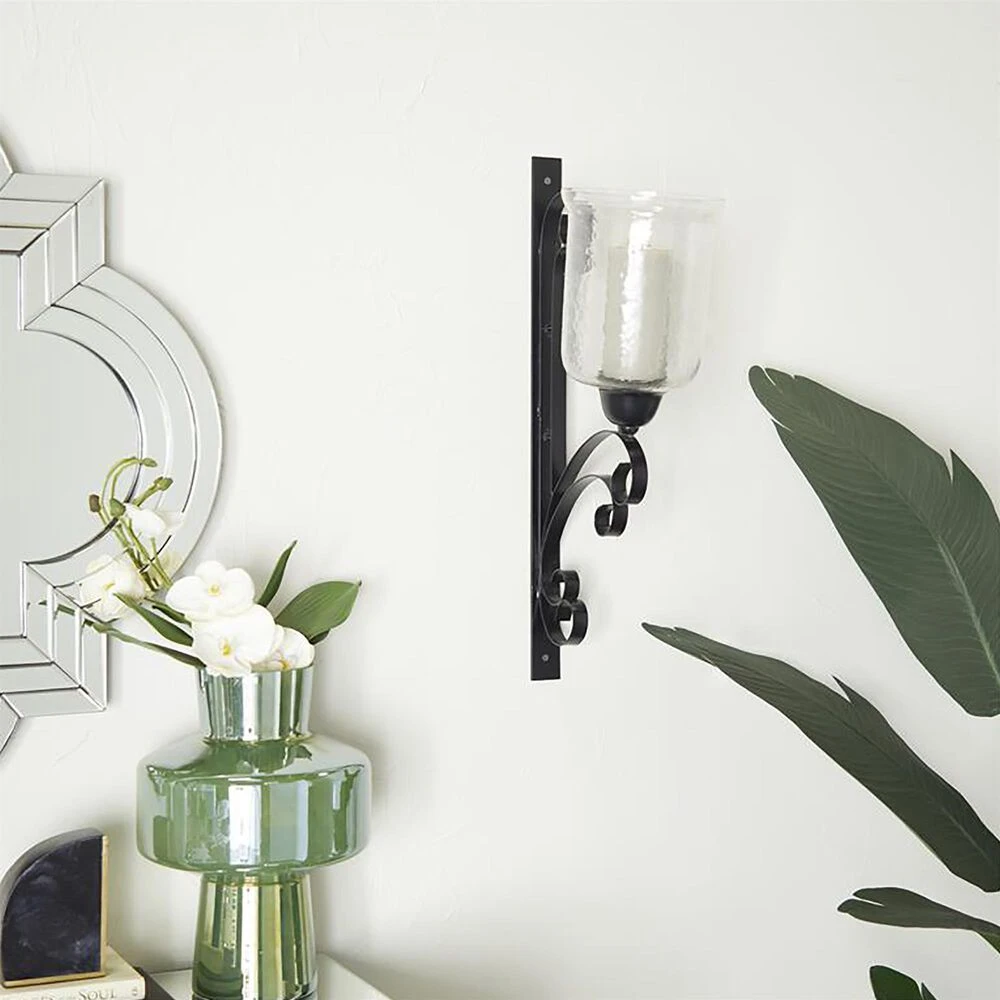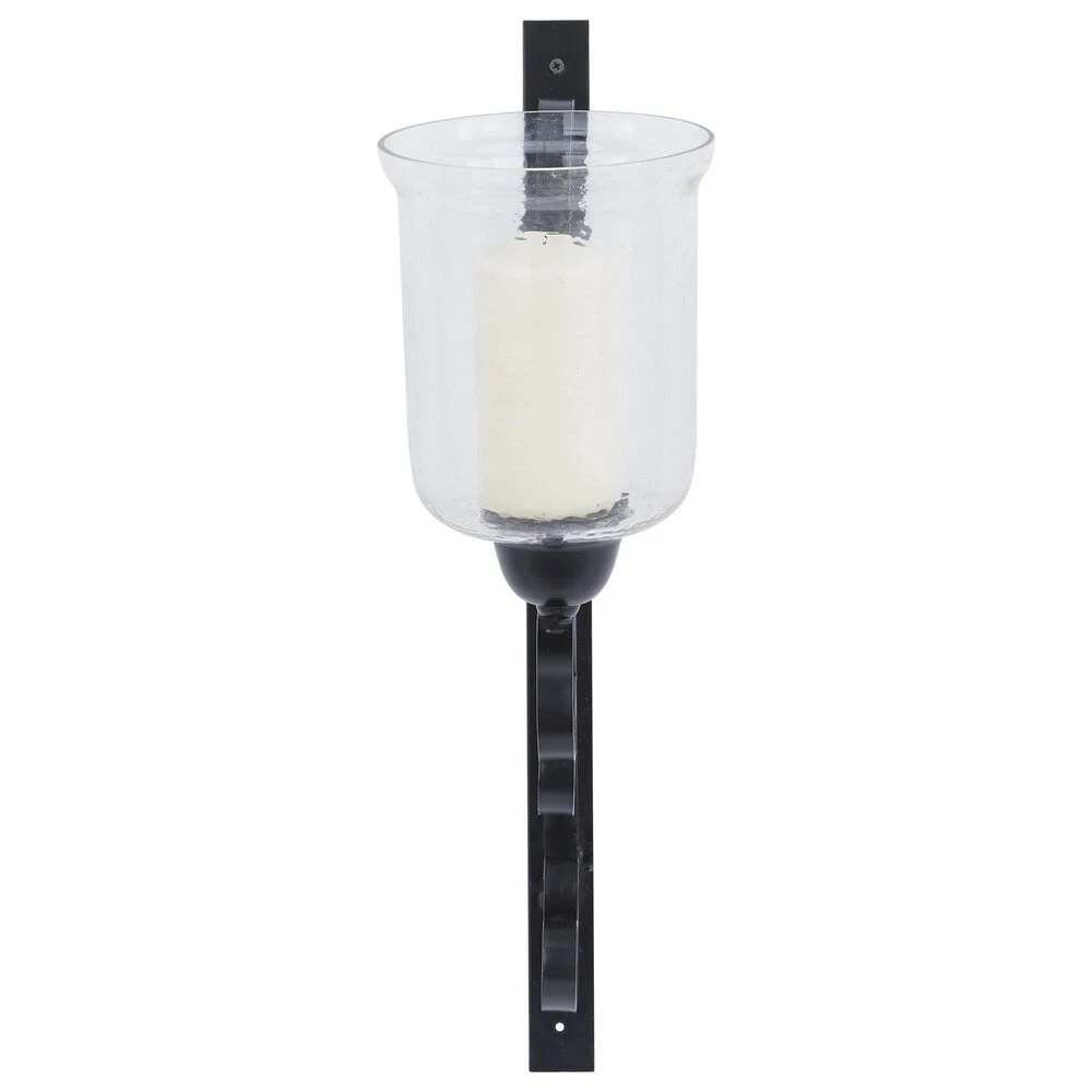 - Candle wall sconce comes in a black finish that suits any light-toned interior including traditional