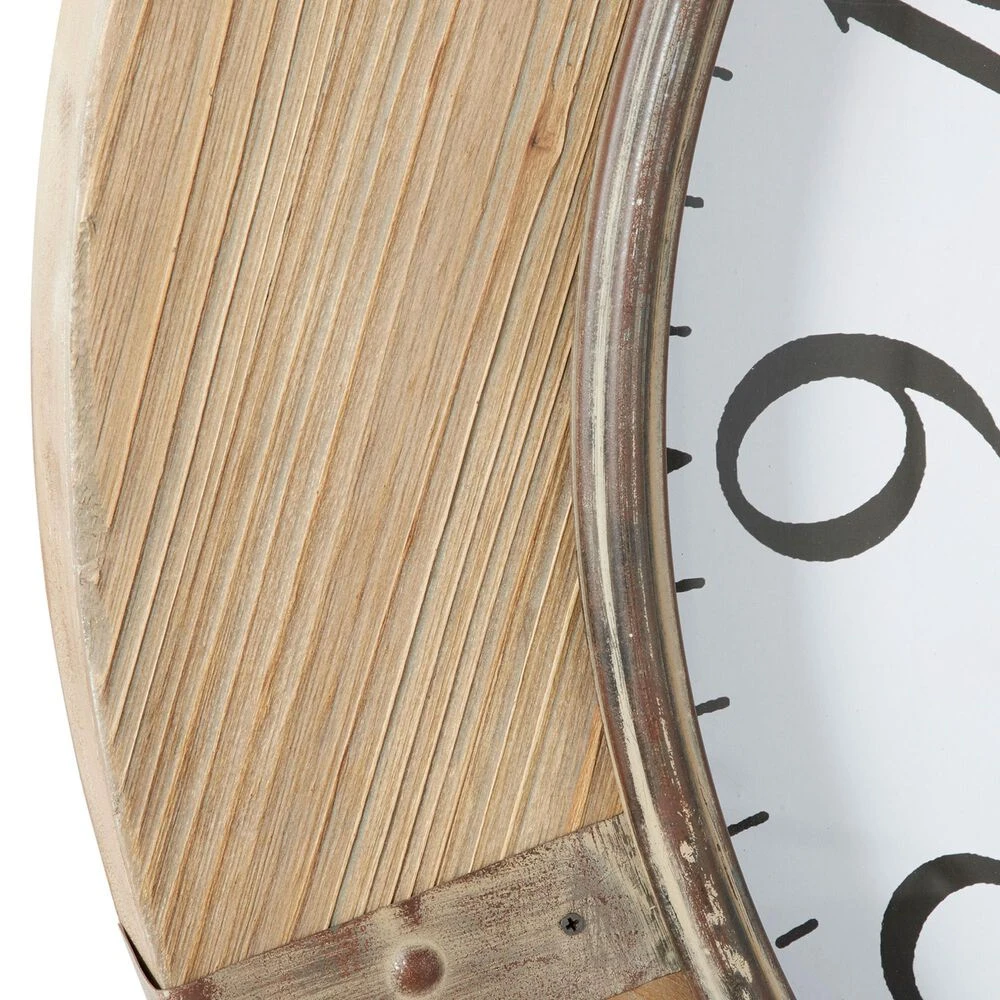 - This rustic wall clock showcases a round wooden frame with decorative rivets