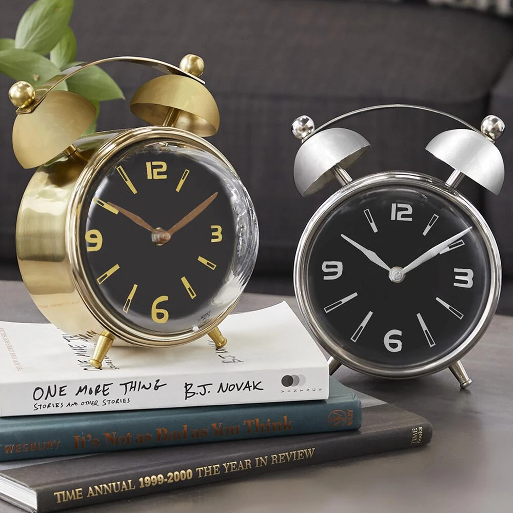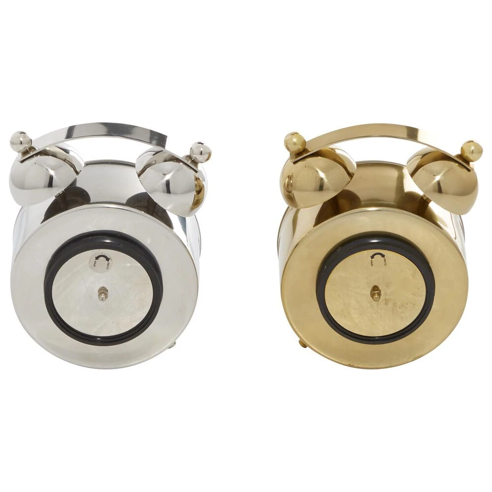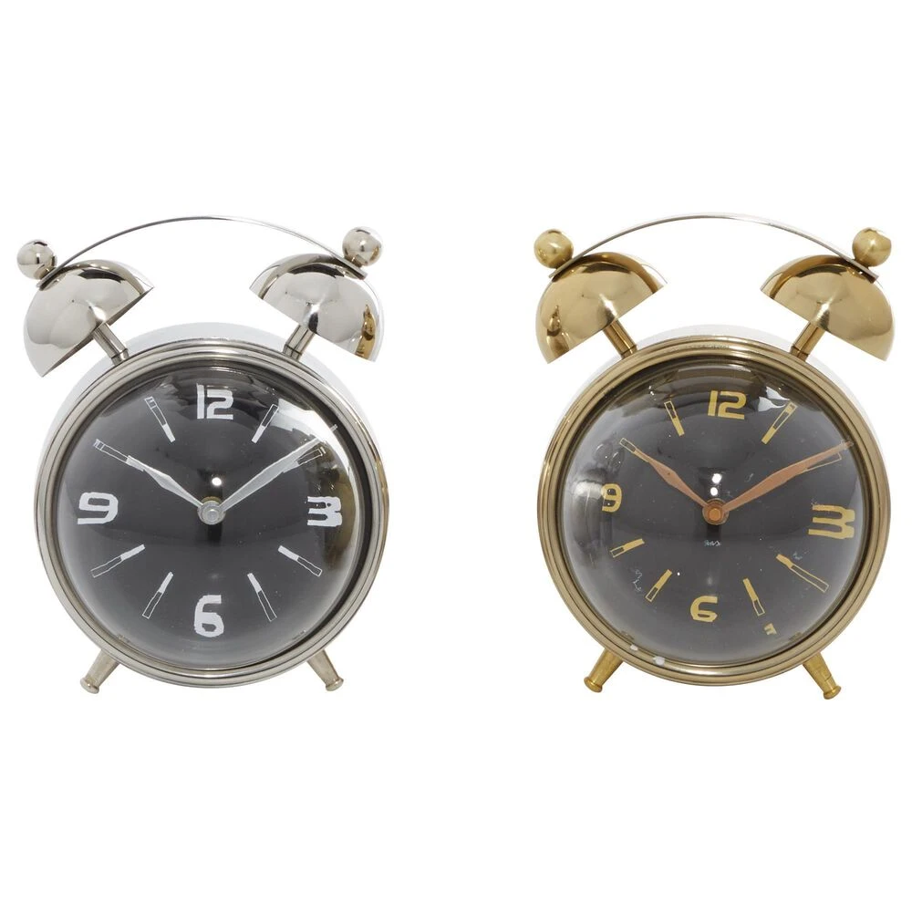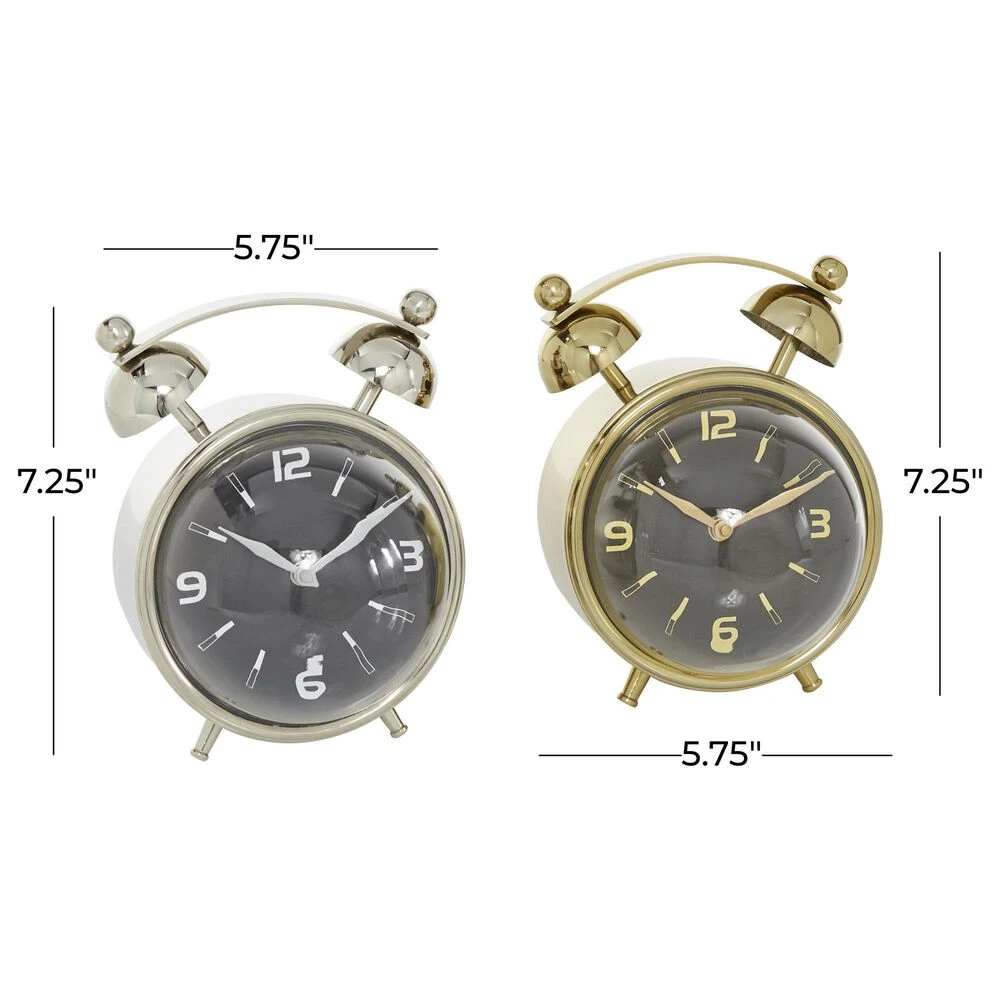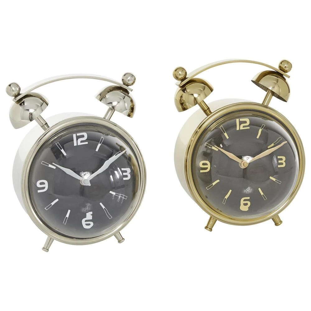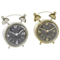 Improve your time management skills and keep a clock close by with this charming piece. A dashing display on any surface to help you manage your time throughout the day. Placed on your console or coffee table, this table clock is sure to be a timeless addition to your home or office. Requires 1 AA batteries. Not Included.. This item ships in 1 carton. Features Arabic numerals for 12, 3, 6, 9 markers. The clock mechanism runs silent. Suitable for indoor use only. Made in India. This set includes 2 clock. Contemporary design.