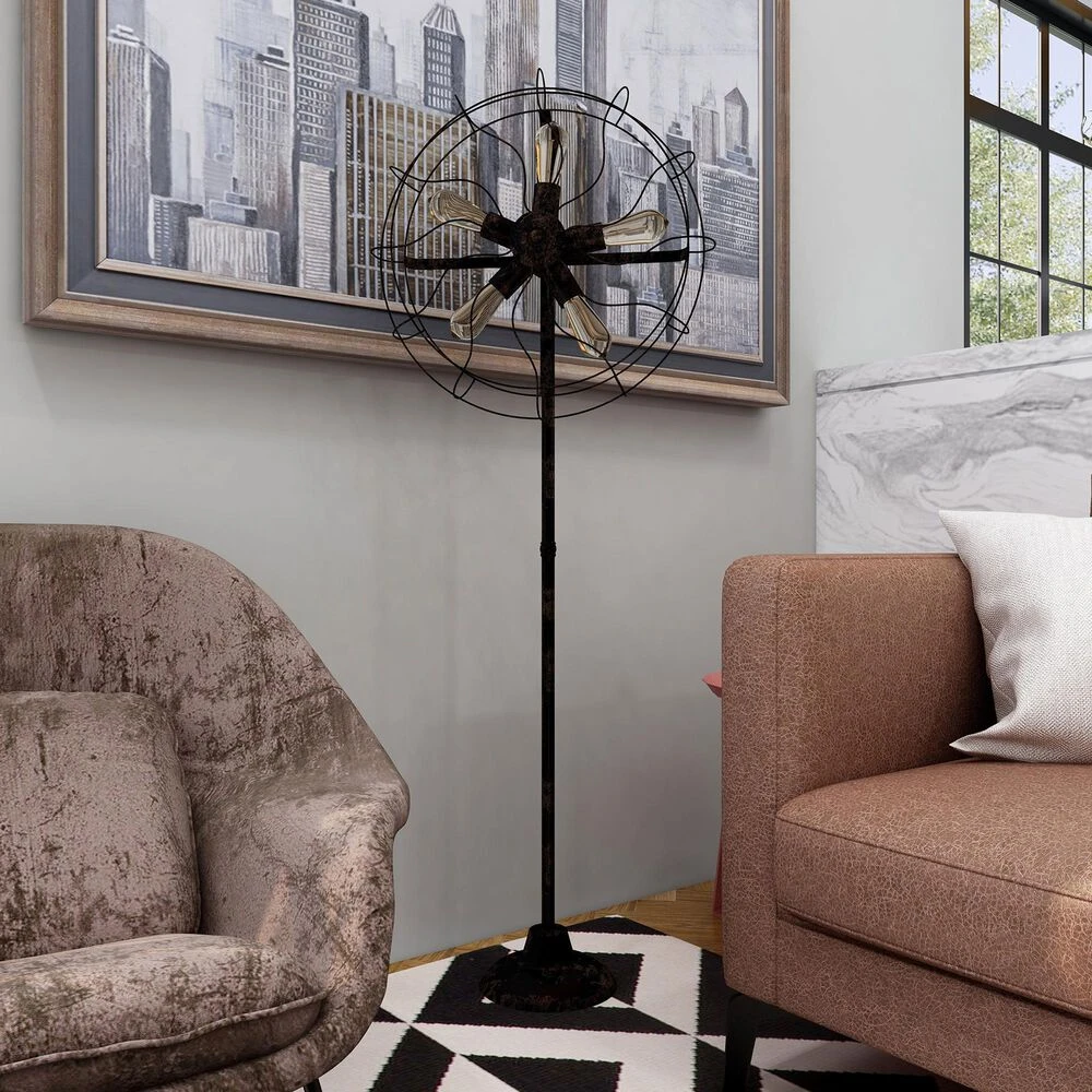 Brighten up any room to create a warming atmosphere for you and your guests with this chic floor lamp. Make a statement with this unique floor lamp on any surface space for a balanced look. Brighten up any space in your home with this industrial floor lamp with unique design. Requires 5 Edison bulbs, included. This item ships in 1 carton. Cord length is 132 inches. This industrial floor lamp has a long thin rod that connects to the base.. Suitable for indoor use only. Comes with a footstep on/off switch. Designed with an industrial theme.