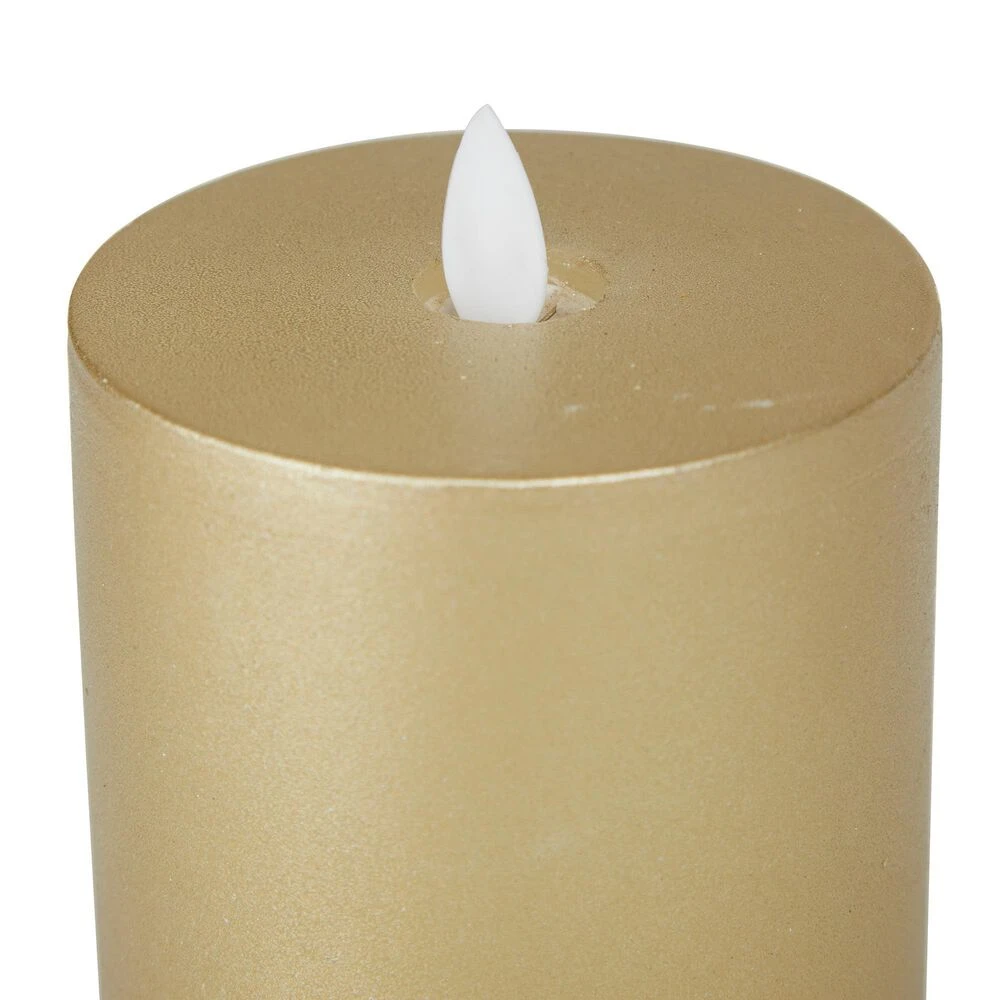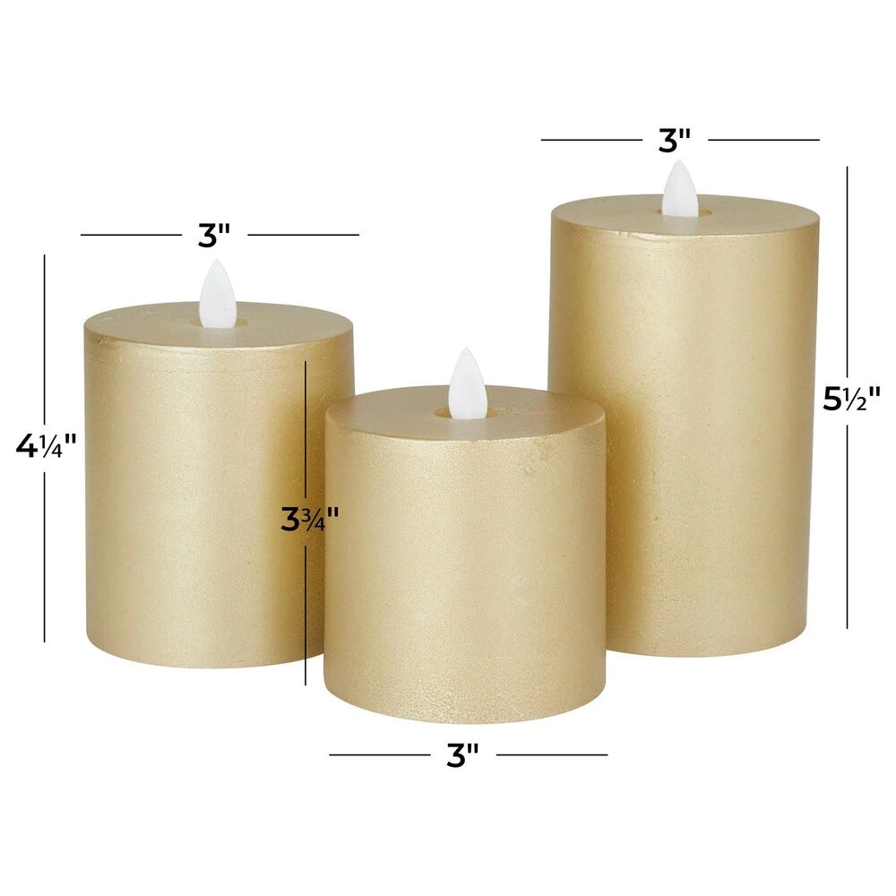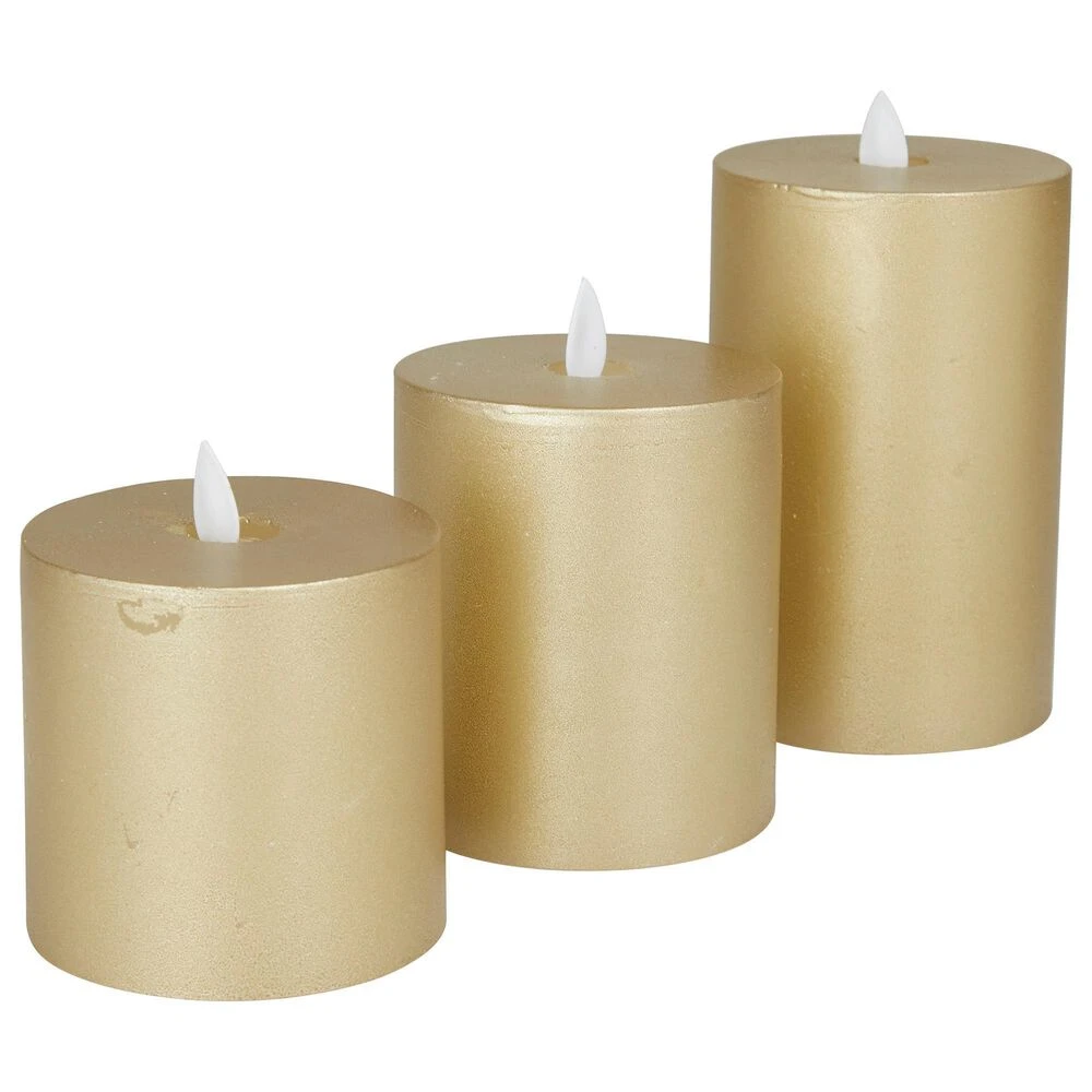 - This dimmable LED candle with remote showcases 3-set cylinder candles in various heights and a solid gold body styled with a white LED flame