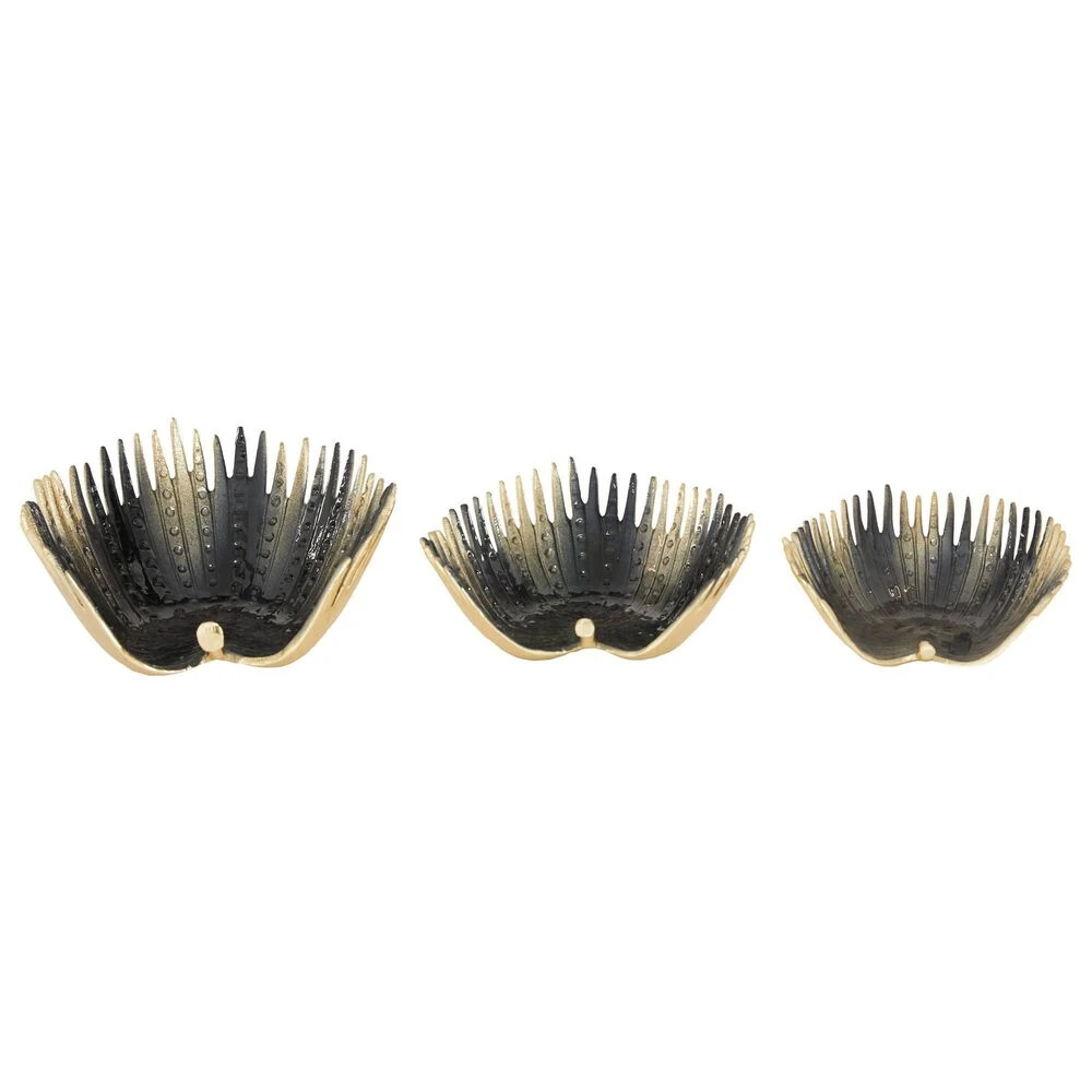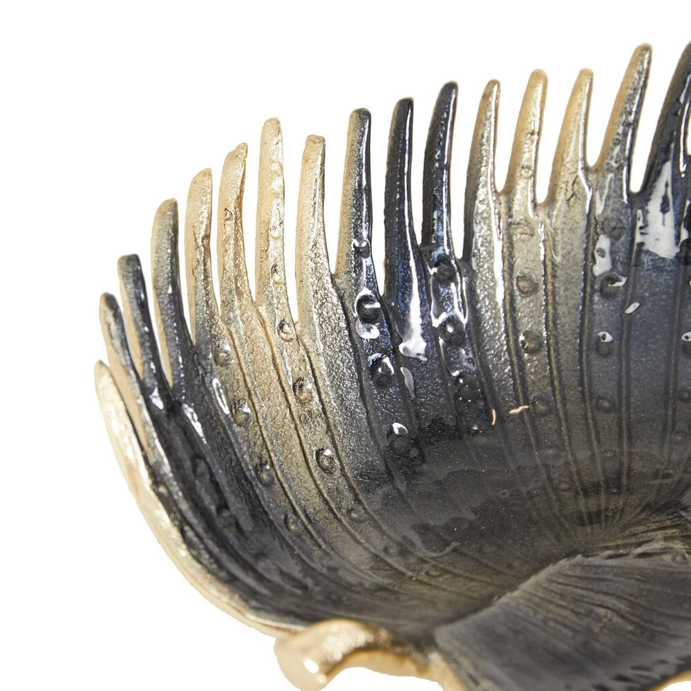 - Features leaf-inspired decorative bowls in polished gold and black finishes